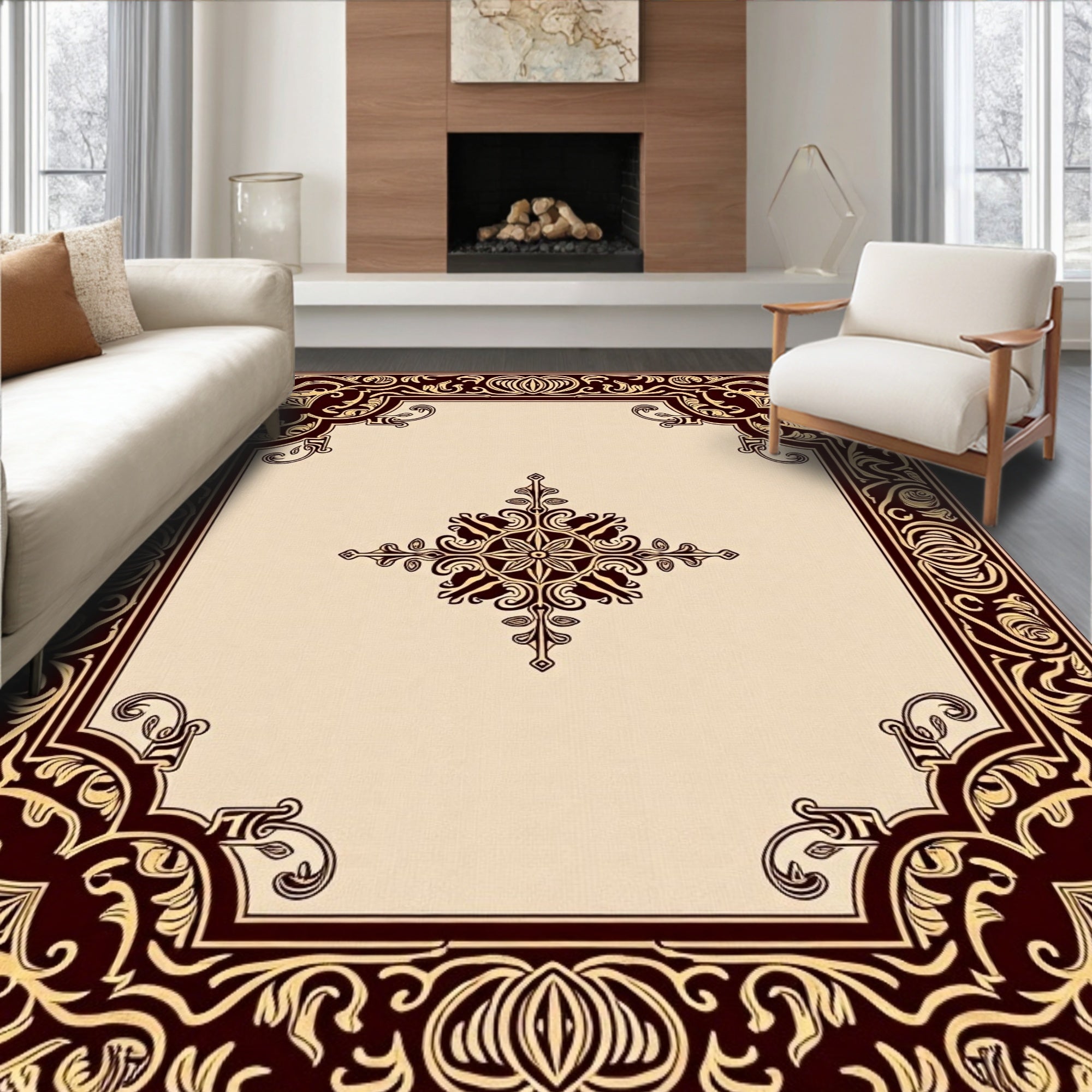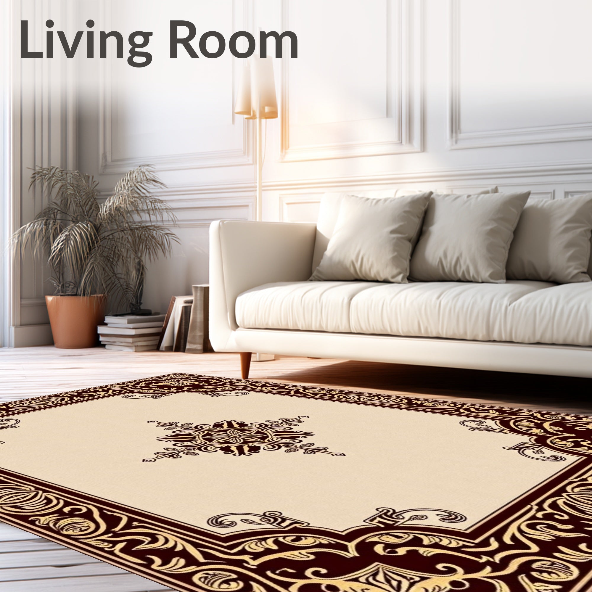 Ultra Soft Area Rug, Non Slip, Stain Resistant, Washable Area Rugs for Living Room, Bedroom, Heritage Paisley Arabesque with Classical Filigree Details(Beige) Overview: