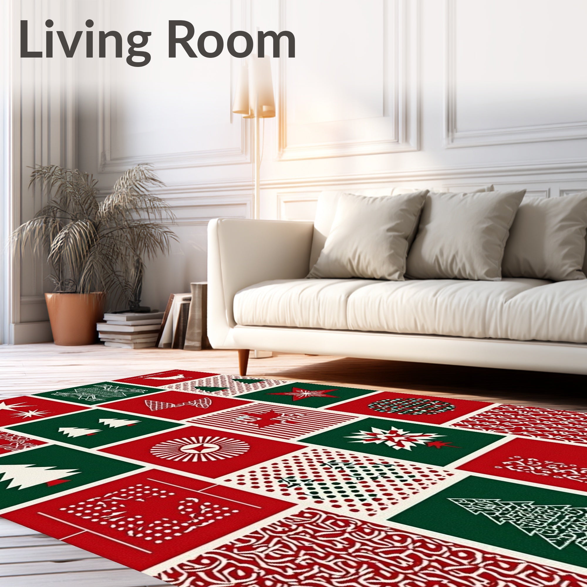 Ultra Soft Area Rug, Non Slip, Stain Resistant, Washable Area Rugs for Living Room, Bedroom, Heritage Patchwork Celebration(Red) Overview: