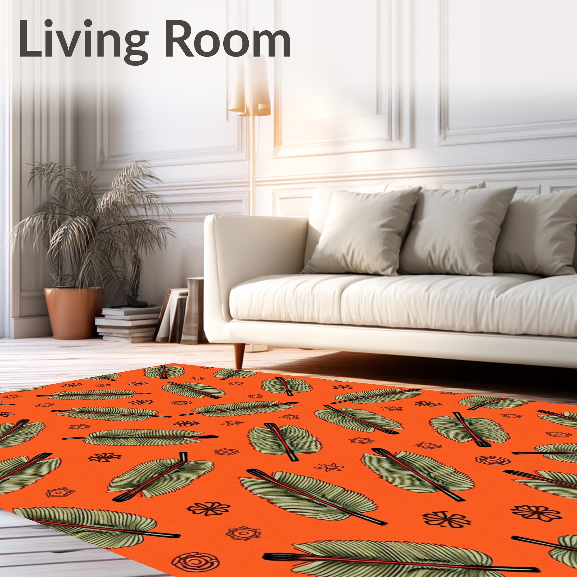 Ultra Soft Area Rug, Non Slip, Stain Resistant, Washable Area Rugs for Living Room, Bedroom, Heritage Pine Cone Print(Orange) Overview: