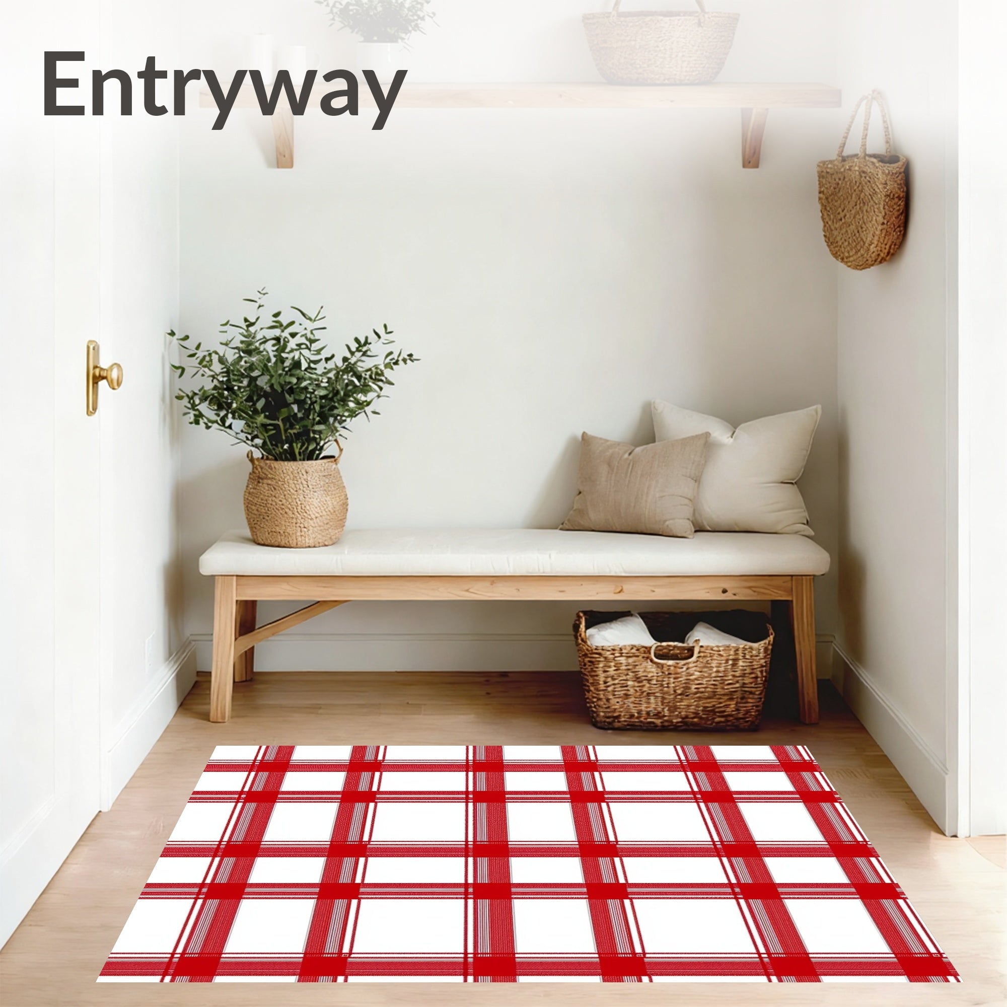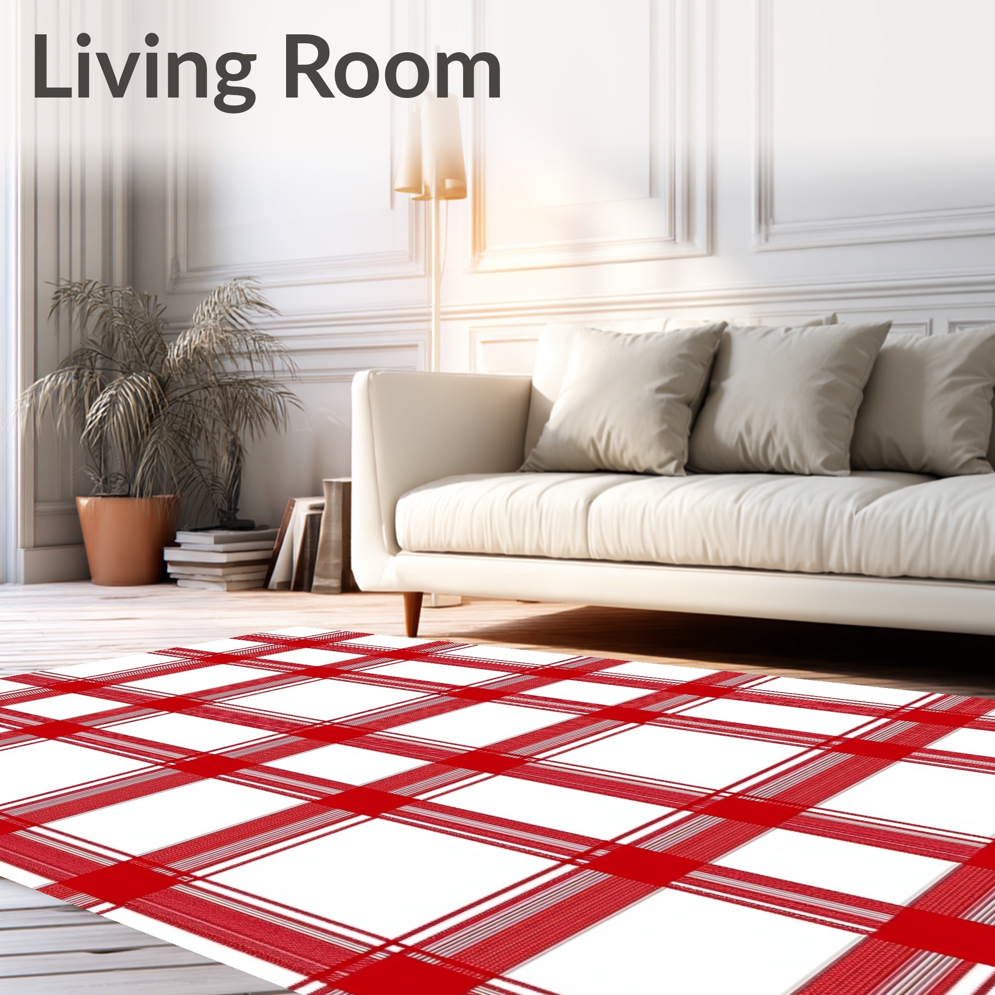 Ultra Soft Area Rug, Non Slip, Stain Resistant, Washable Area Rugs for Living Room, Bedroom, Heritage Windowpane Plaid with Festive Accent Stripes(Red) Overview: