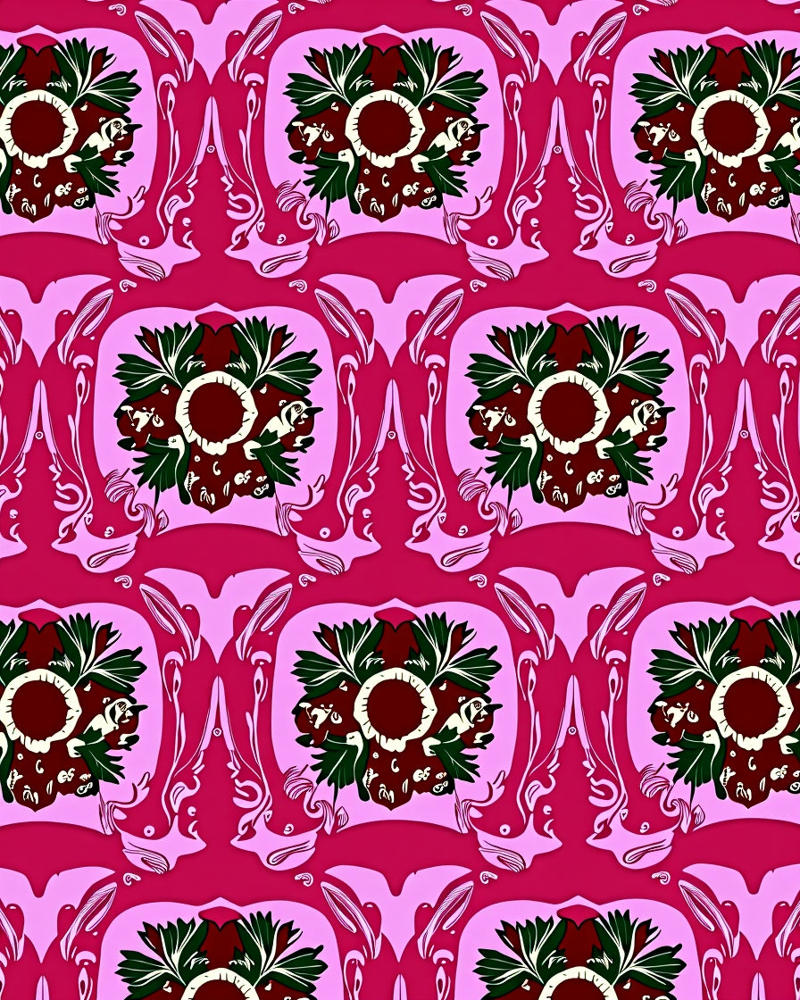 Heritage Wreath Medallions with Baroque Vine Accents(Pink)