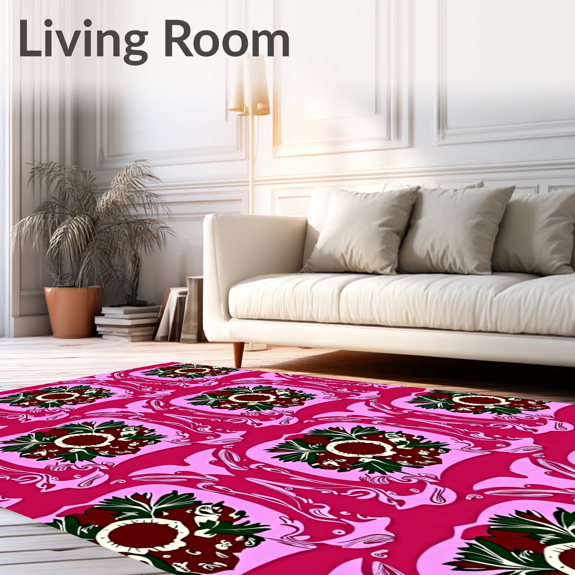 Ultra Soft Area Rug, Non Slip, Stain Resistant, Washable Area Rugs for Living Room, Bedroom, Heritage Wreath Medallions with Baroque Vine Accents(Pink) Overview: