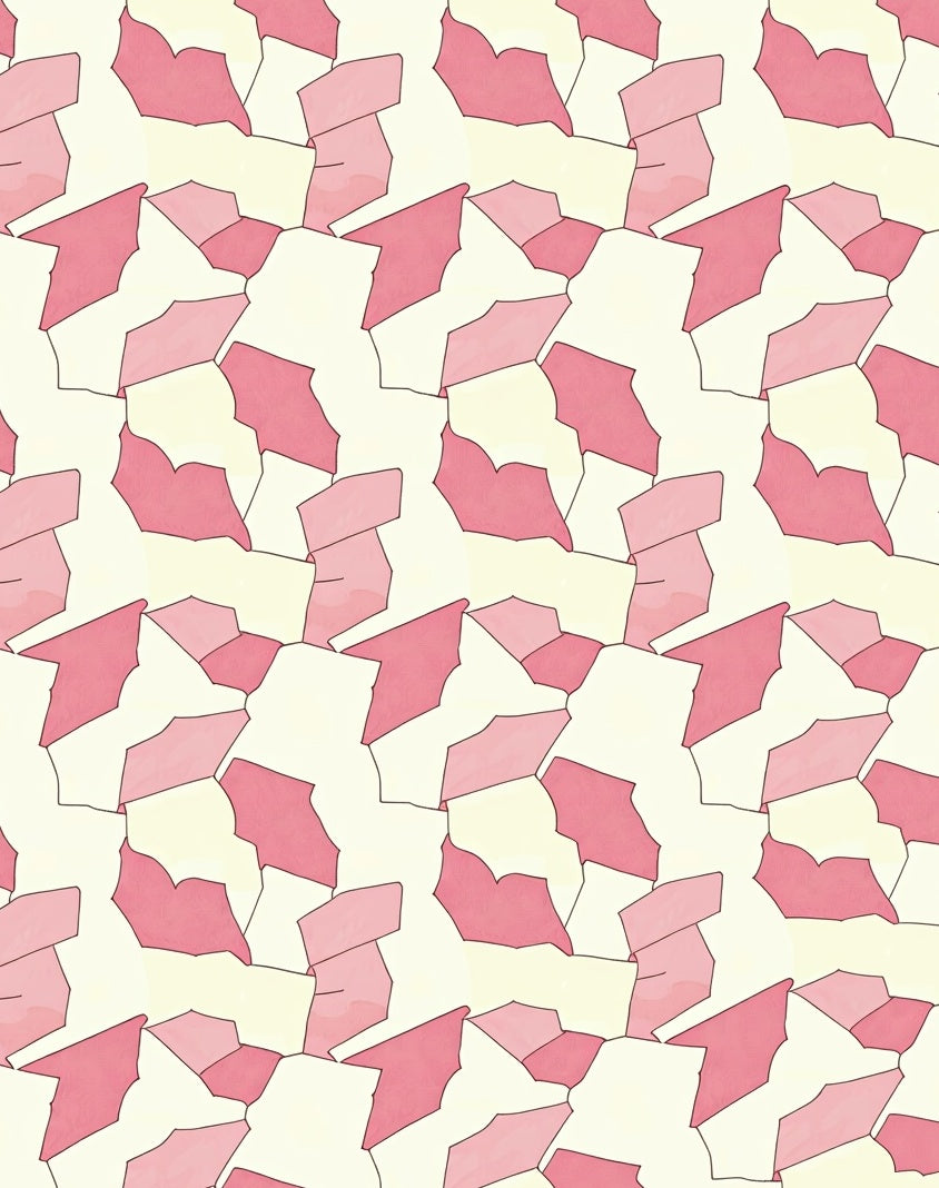 Hexagonal Mosaic Contemporary with Interconnected Shapes(Pink)