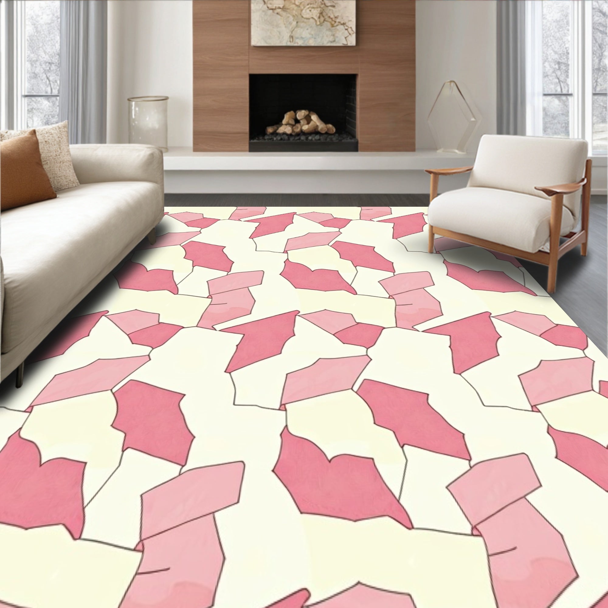 Ultra Soft Area Rug, Non Slip, Stain Resistant, Washable Area Rugs for Living Room, Bedroom, Hexagonal Mosaic Contemporary with Interconnected Shapes(Pink) Overview: