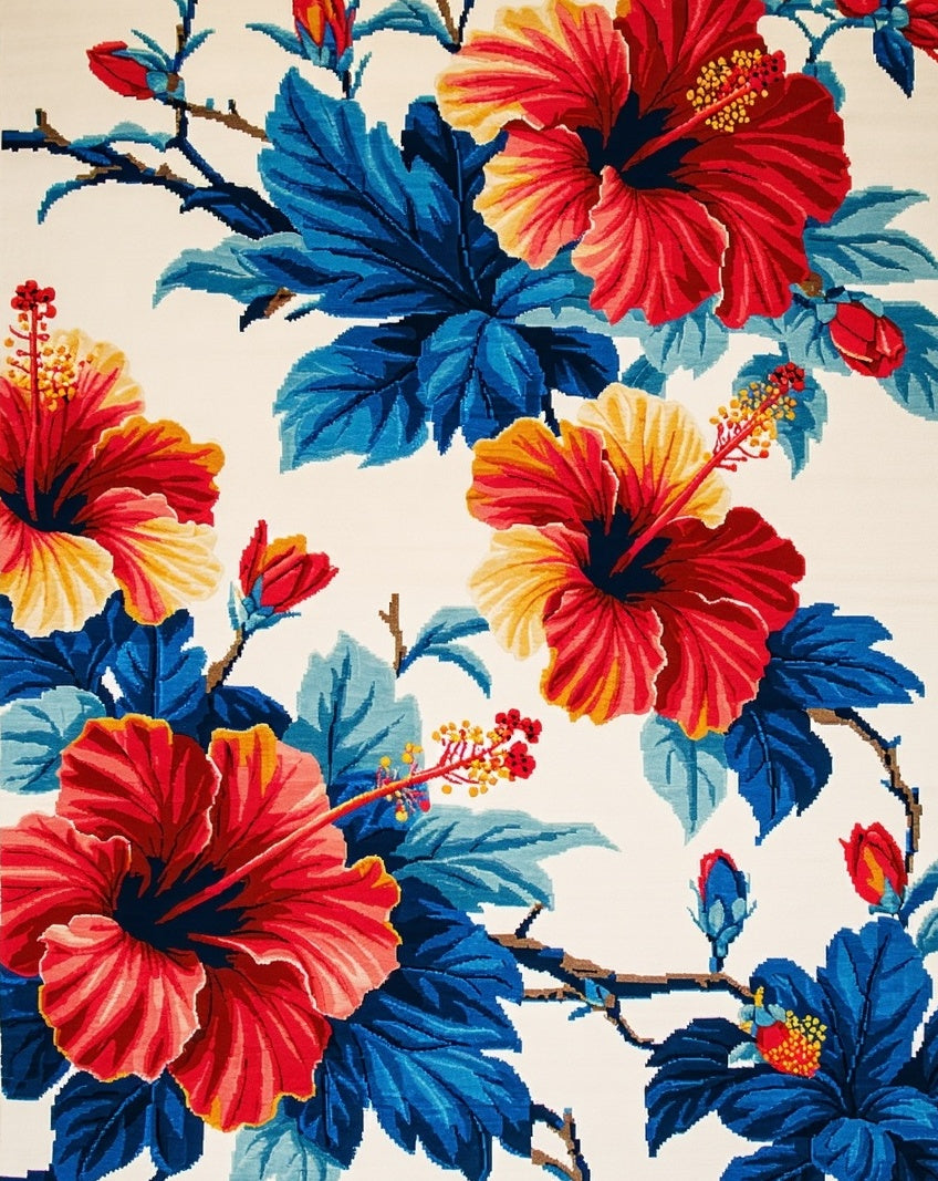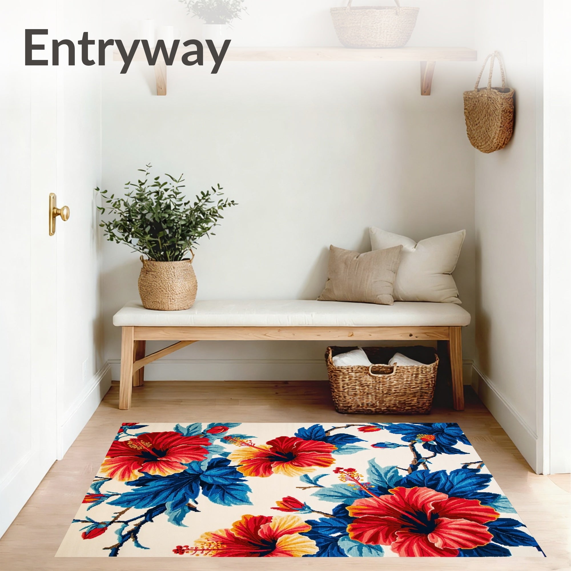 Ultra Soft Area Rug, Non Slip, Stain Resistant, Washable Area Rugs for Living Room, Bedroom, Hibiscus Paradise Floral Area With UV Protection For Garden Patios(White) Overview: