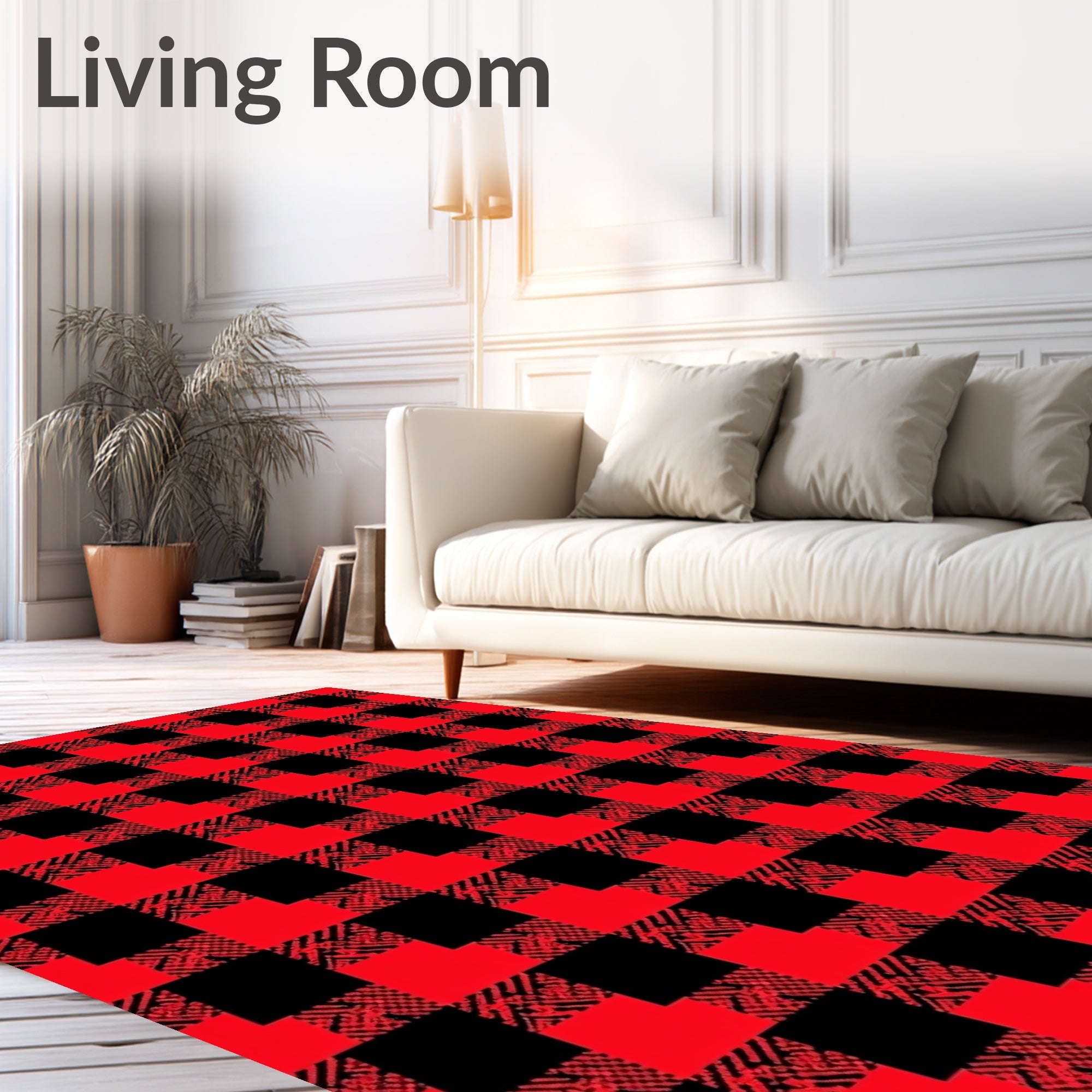 Ultra Soft Area Rug, Non Slip, Stain Resistant, Washable Area Rugs for Living Room, Bedroom, Highland Crosshatch Buffalo Check Contemporary Floor Covering(Black) Overview: