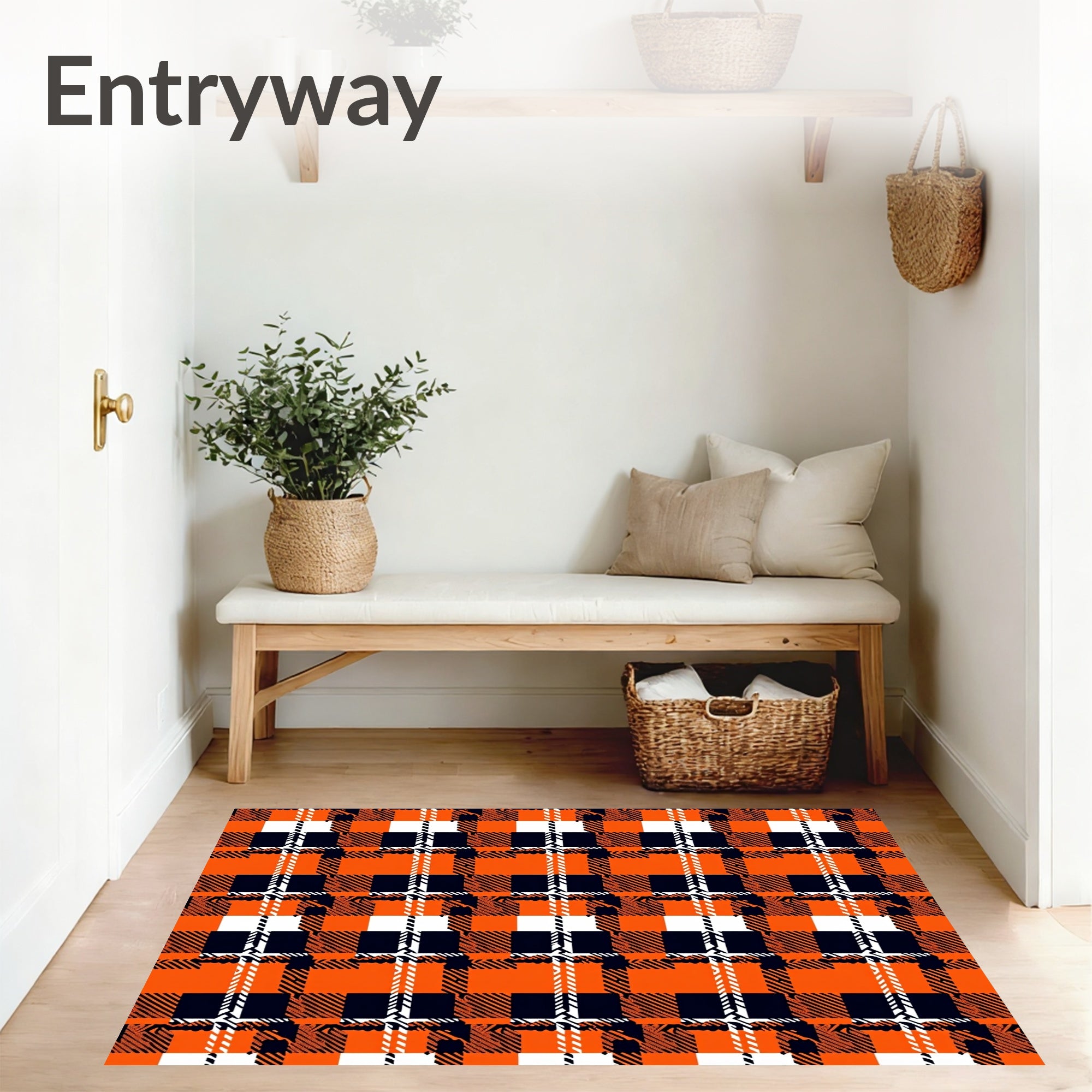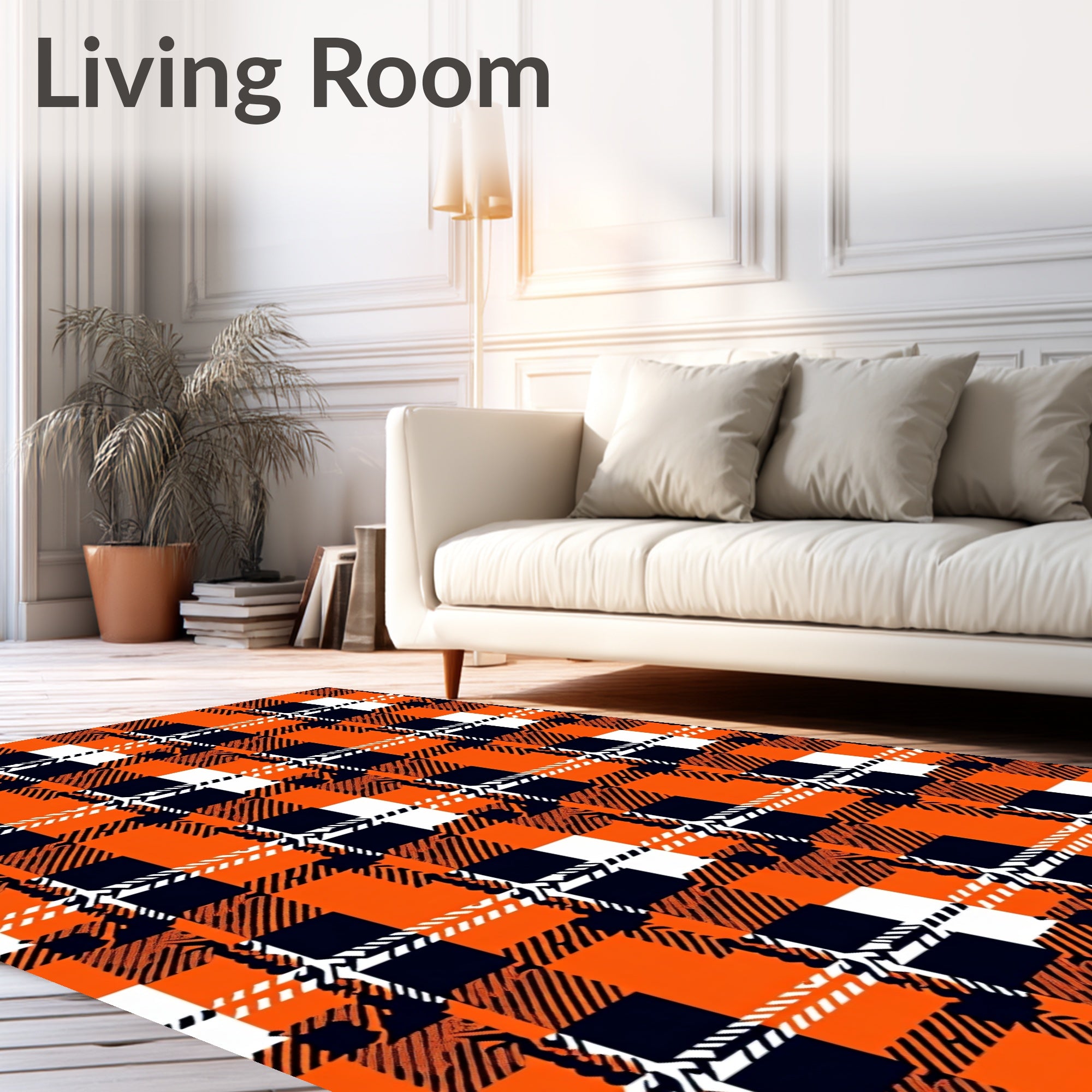 Ultra Soft Area Rug, Non Slip, Stain Resistant, Washable Area Rugs for Living Room, Bedroom, Highland Tartan Crosshatch Elegant Seasonal(Orange) Overview: