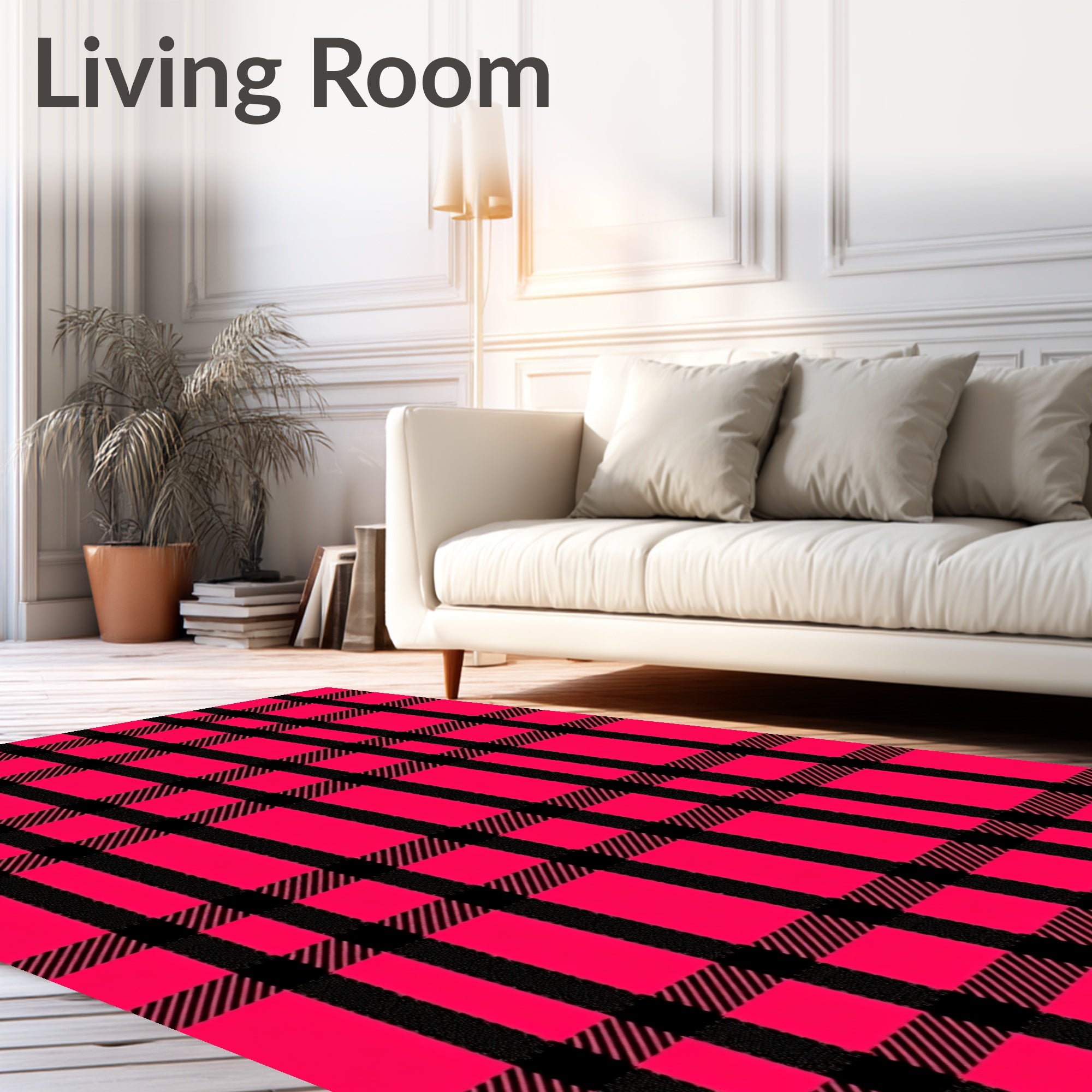 Ultra Soft Area Rug, Non Slip, Stain Resistant, Washable Area Rugs for Living Room, Bedroom, Highland Tartan Decorative Floor Covering Festive Design(Pink) Overview: