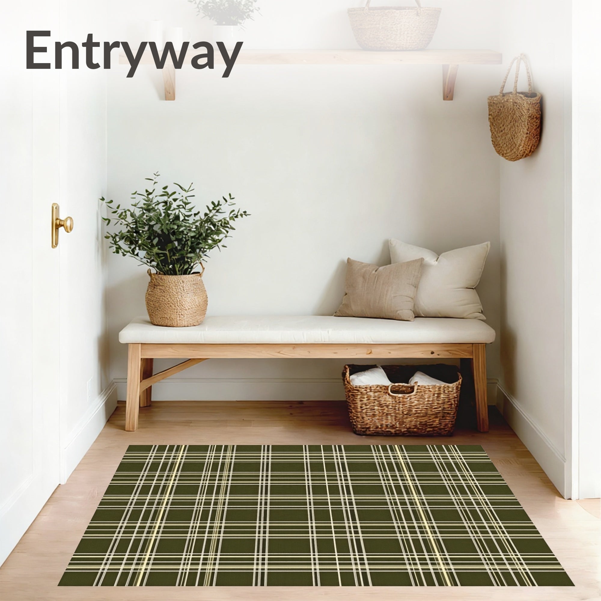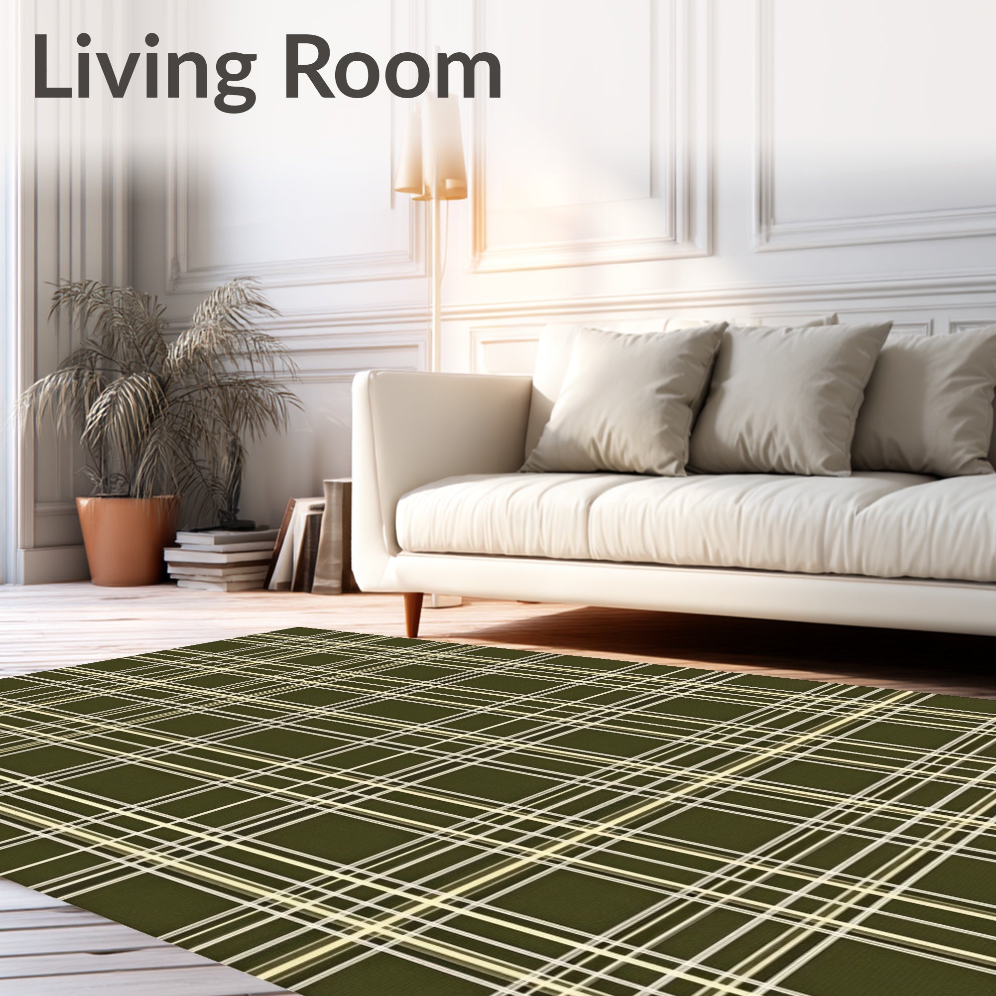 Ultra Soft Area Rug, Non Slip, Stain Resistant, Washable Area Rugs for Living Room, Bedroom, Highland Tartan Festive Classic Vintage Plaid Lattice(Green) Overview: