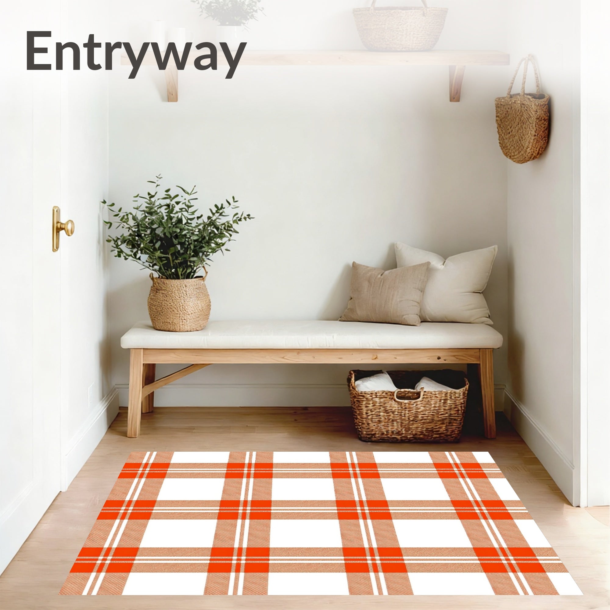 Ultra Soft Area Rug, Non Slip, Stain Resistant, Washable Area Rugs for Living Room, Bedroom, Highland Tartan Seasonal Welcome Surface(Orange) Overview: