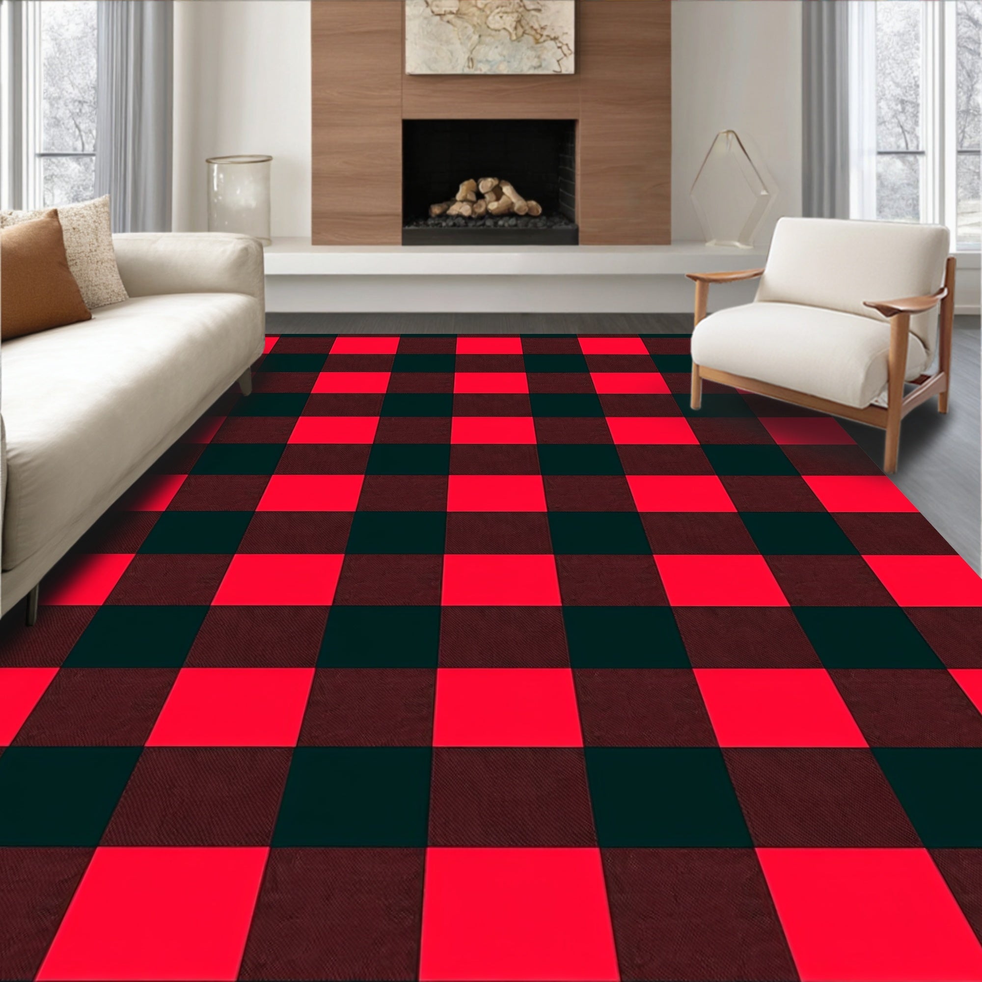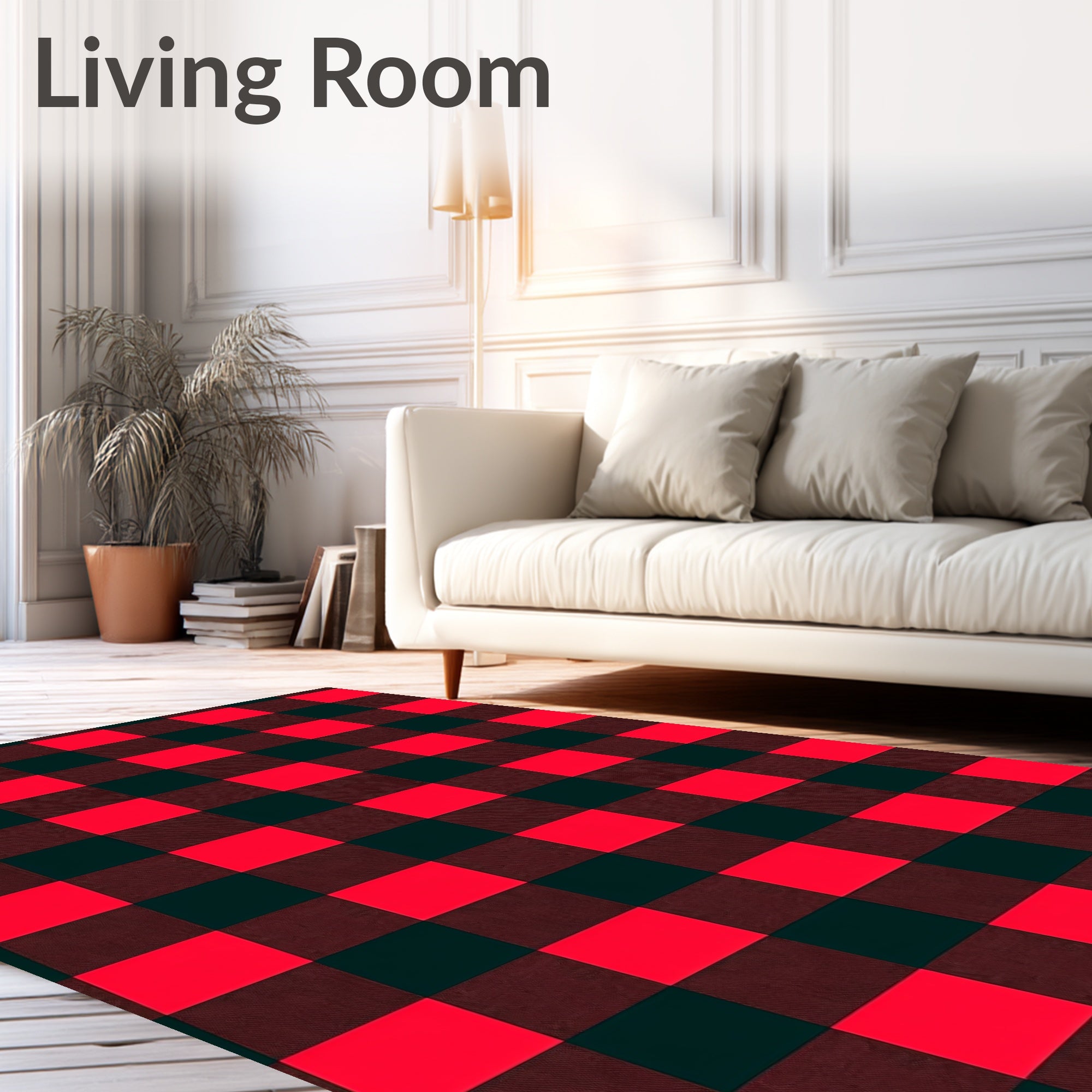 Ultra Soft Area Rug, Non Slip, Stain Resistant, Washable Area Rugs for Living Room, Bedroom, Holiday Checkered with Festive Gingham(Red) Overview: