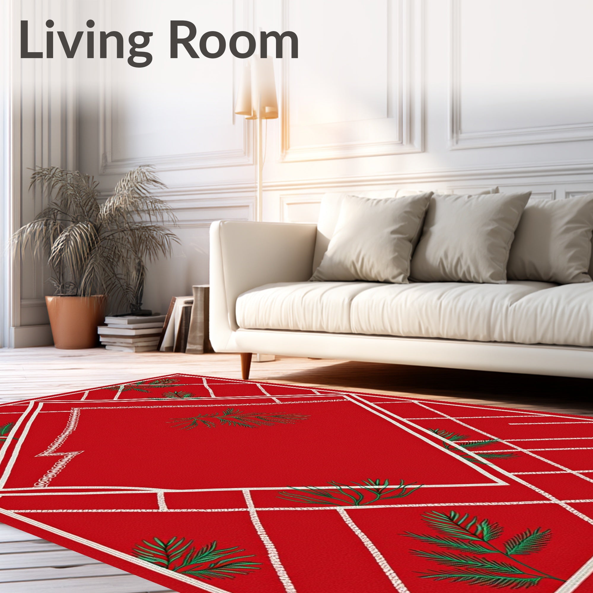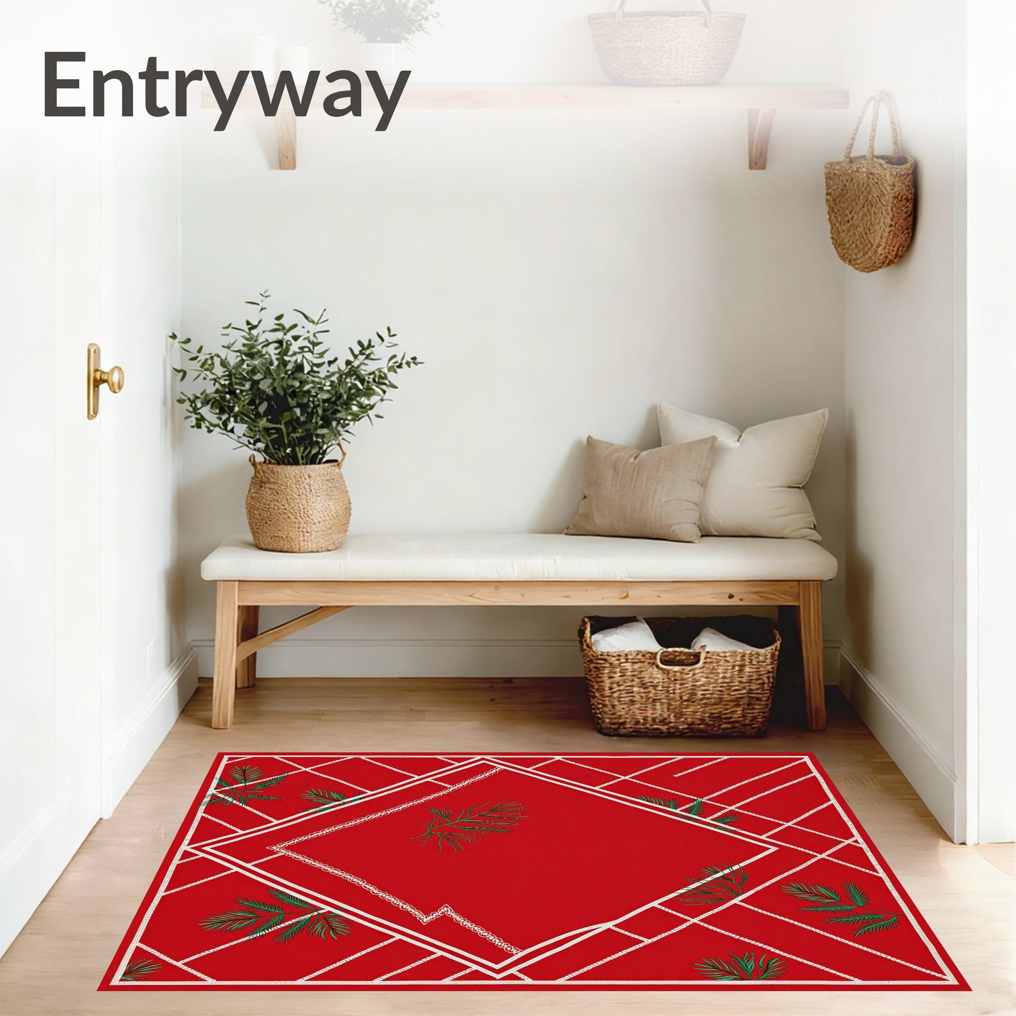Ultra Soft Area Rug, Non Slip, Stain Resistant, Washable Area Rugs for Living Room, Bedroom, Holiday Chevron Waves with Subtle Pine Needle Embellishments(Red) Overview: