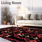 Flatwoven High Traffic Area Rug, Holiday Chime Motif Half Moon Featuring Delicate Ribbon Flourishes, Non Slip, Stain Resistant, Washable Area Rugs for Living Room, Bedroom (Black) Overview: