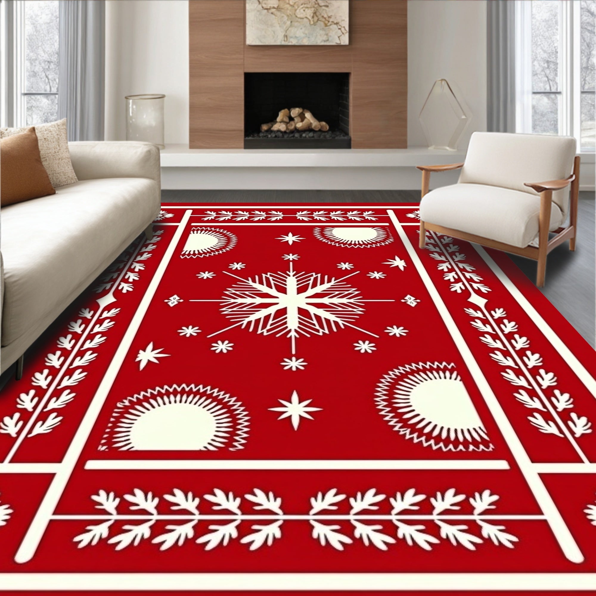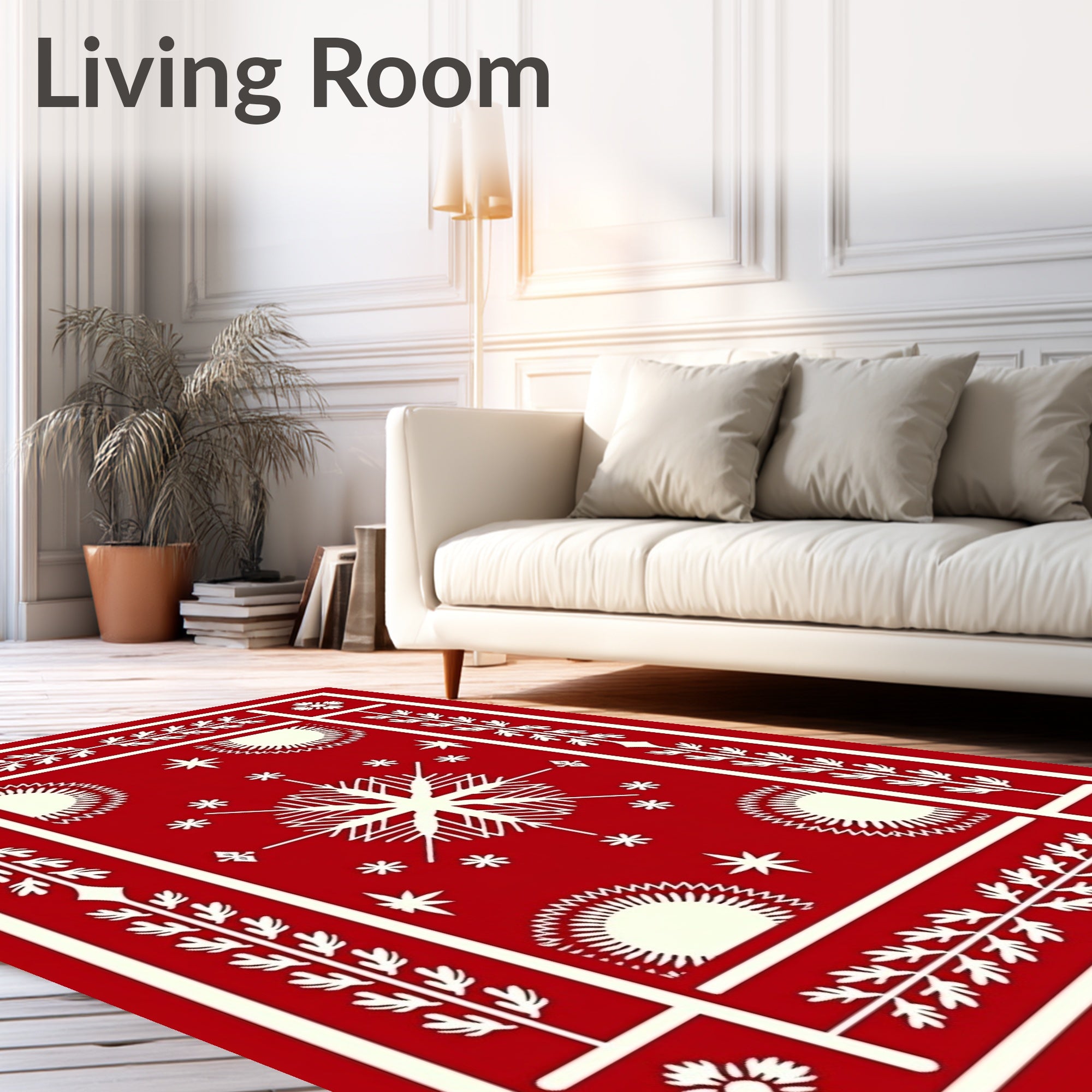Ultra Soft Area Rug, Non Slip, Stain Resistant, Washable Area Rugs for Living Room, Bedroom, Holiday Decorative Featuring Classic Seasonal Emblems(Red) Overview: