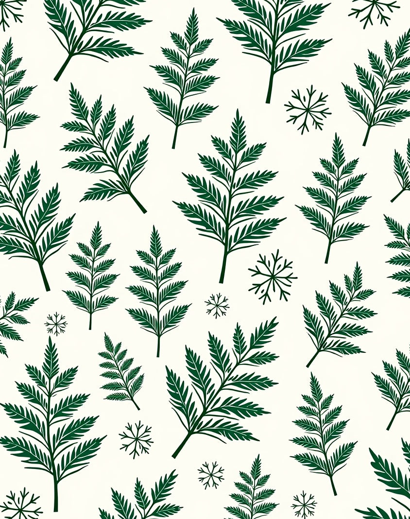 Holiday Evergreen Branch with Snowflake Motifs(Green)
