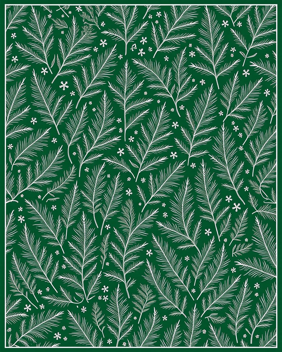 Holiday Evergreen Motif with Delicate Frostflake Embellishments(Green)