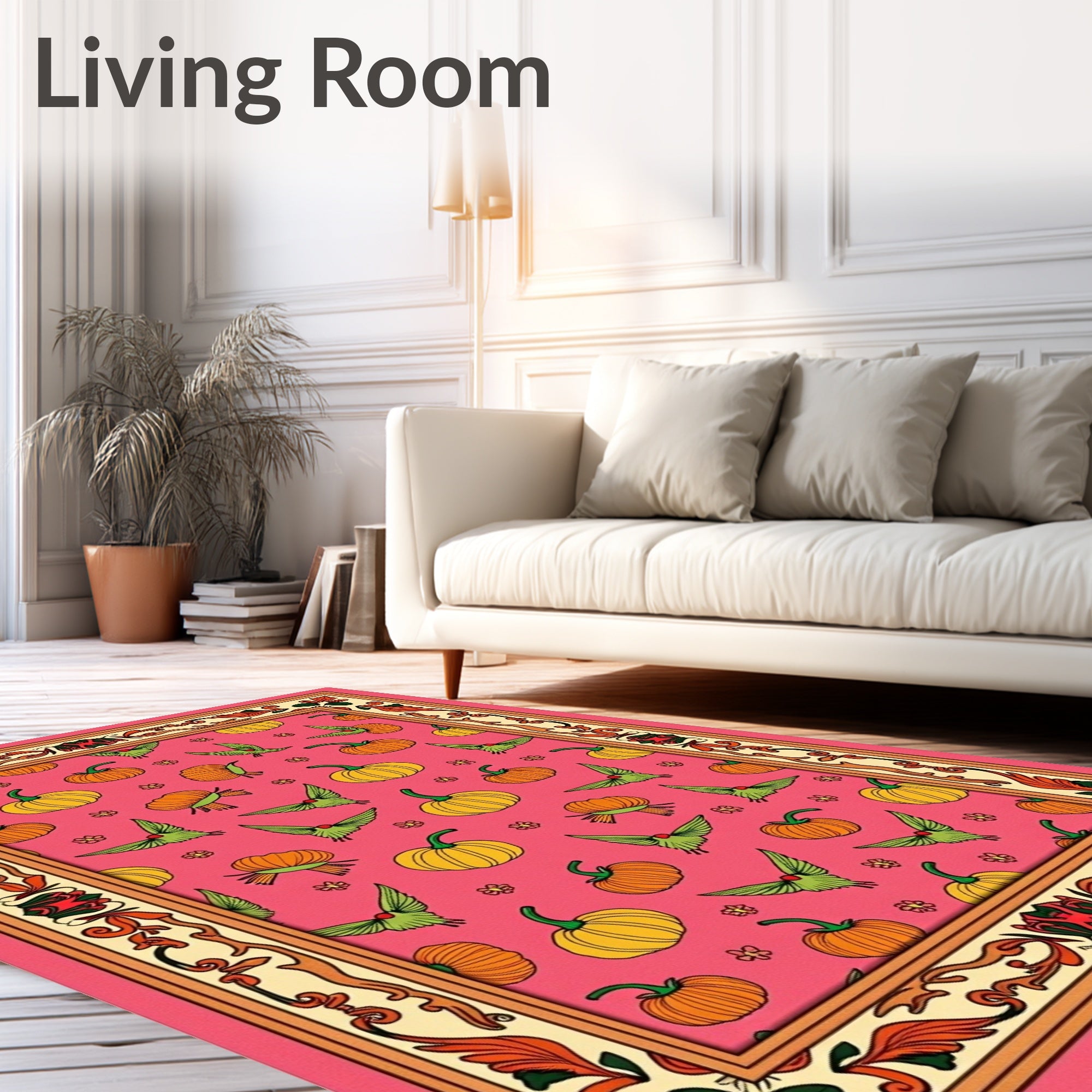 Ultra Soft Area Rug, Non Slip, Stain Resistant, Washable Area Rugs for Living Room, Bedroom, Holiday Feast Themed Decorative(Pink) Overview: