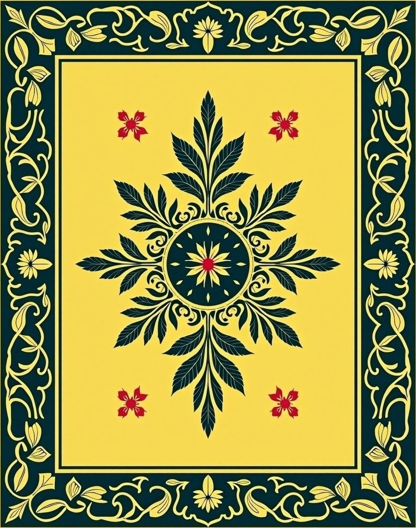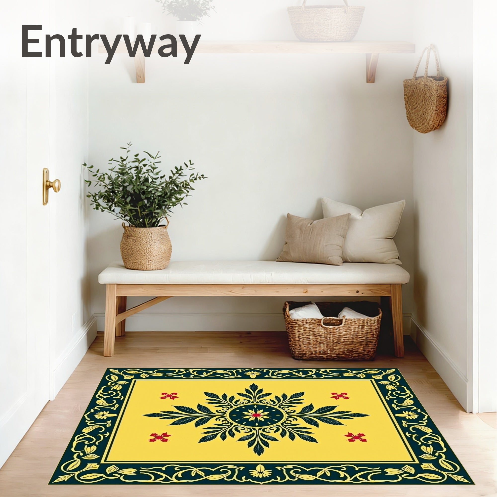 Flatwoven High Traffic Area Rug, Holiday Laurel Medallion Vintage Inspired Botanical Filigree, Non Slip, Stain Resistant, Washable Area Rugs for Living Room, Bedroom (Yellow) Overview: