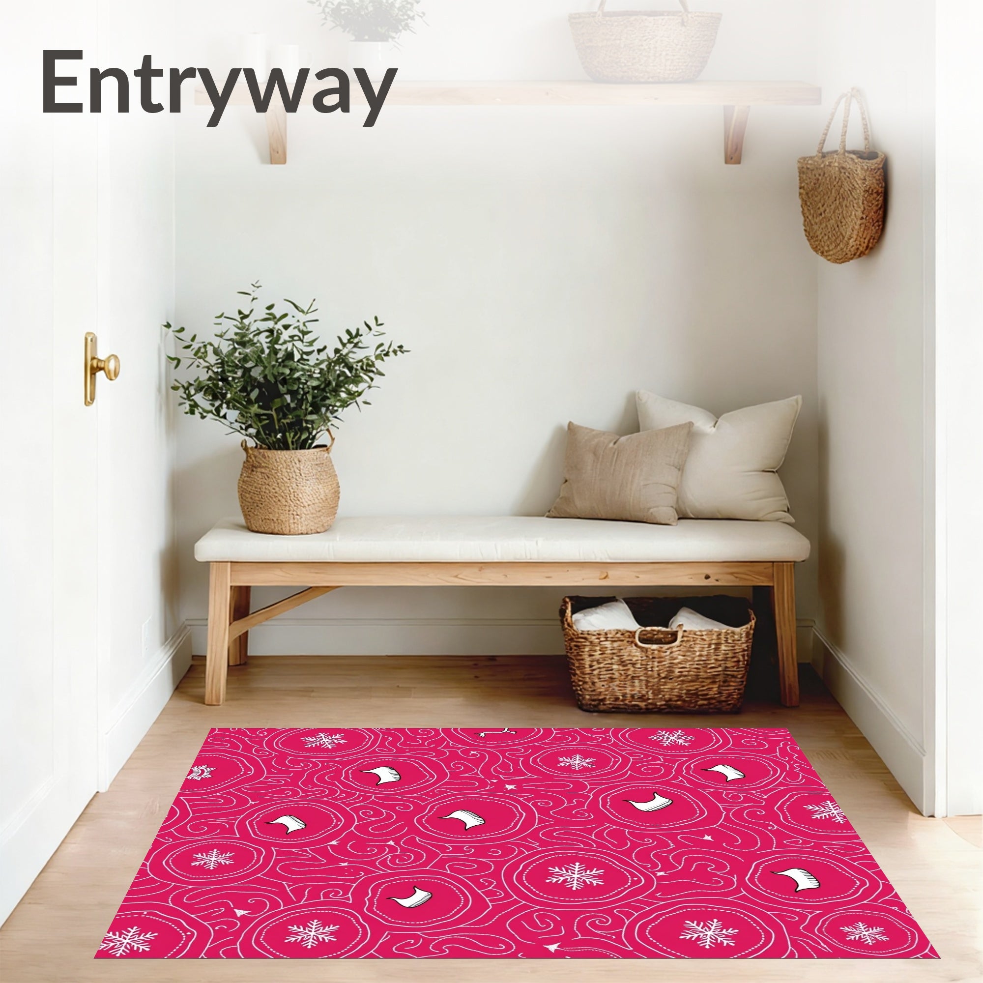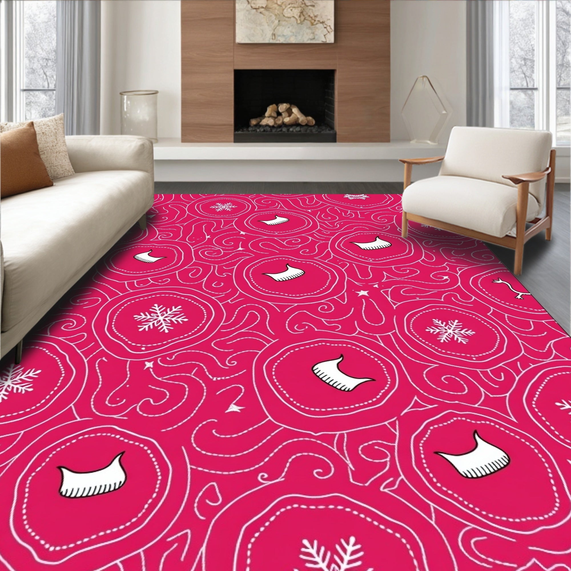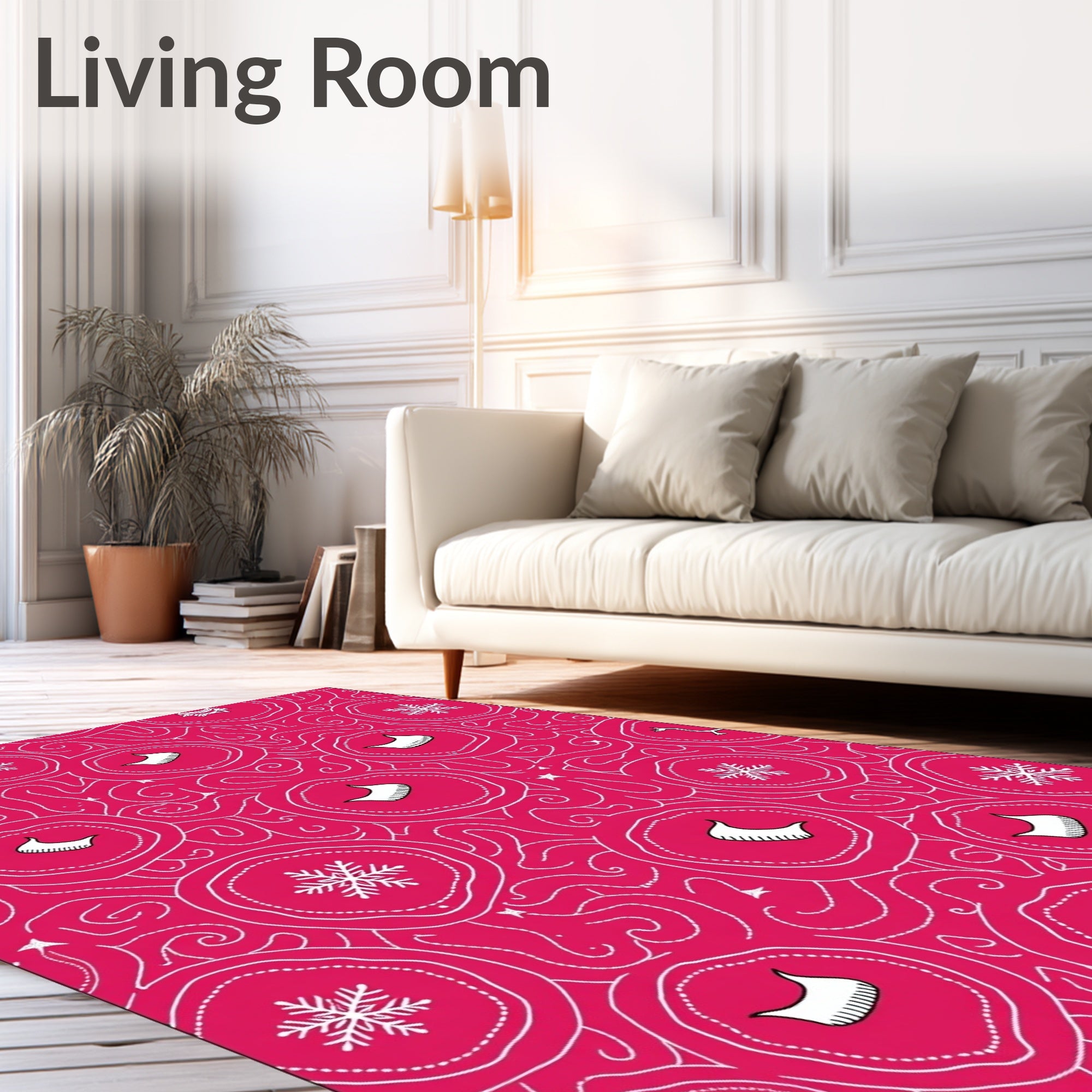 Ultra Soft Area Rug, Non Slip, Stain Resistant, Washable Area Rugs for Living Room, Bedroom, Holiday Light String Cat with Snowflake Mosaic Design(Pink) Overview: