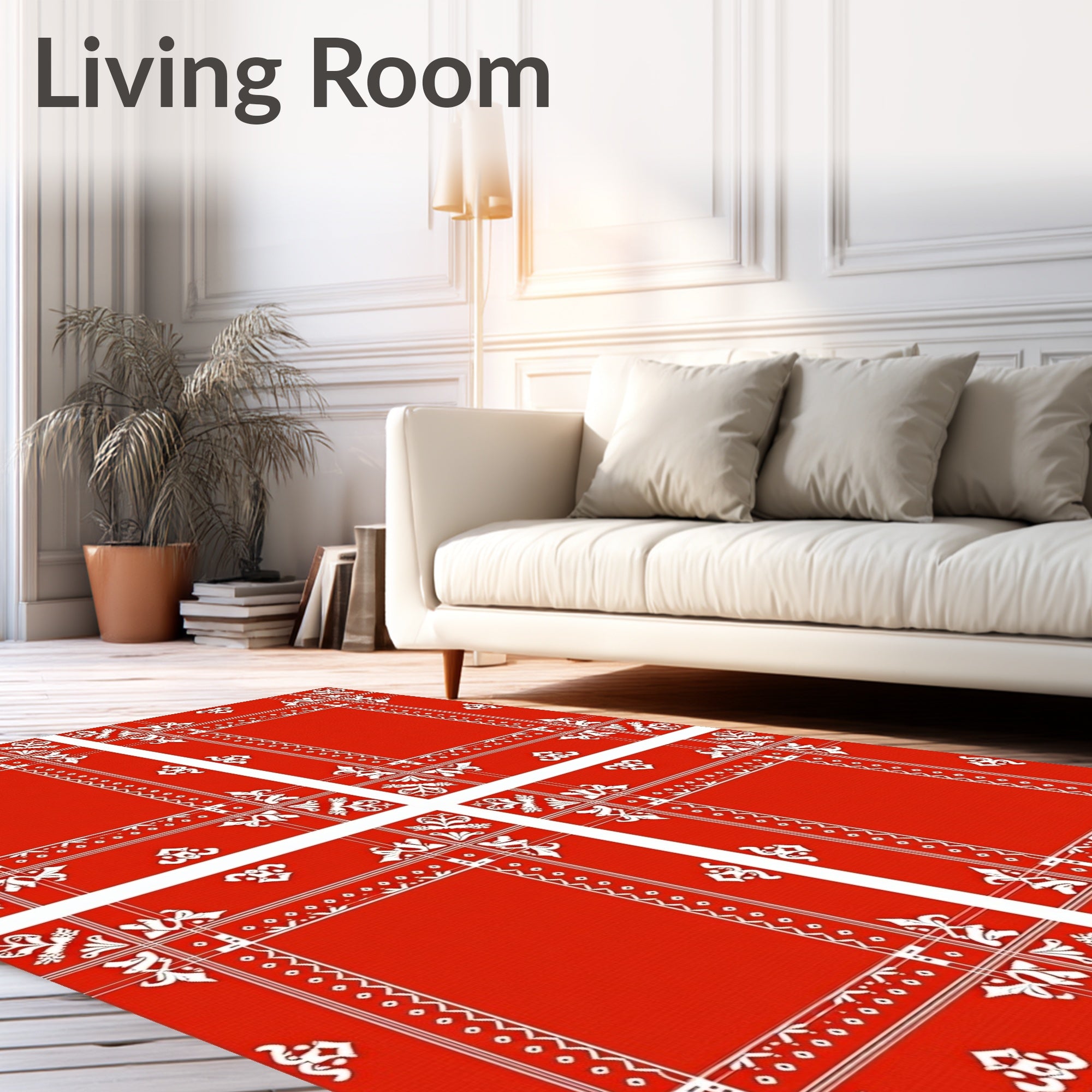 Ultra Soft Area Rug, Non Slip, Stain Resistant, Washable Area Rugs for Living Room, Bedroom, Holiday Patchwork Tartan with Whimsical Snow Crystal Flourishes(Red) Overview: