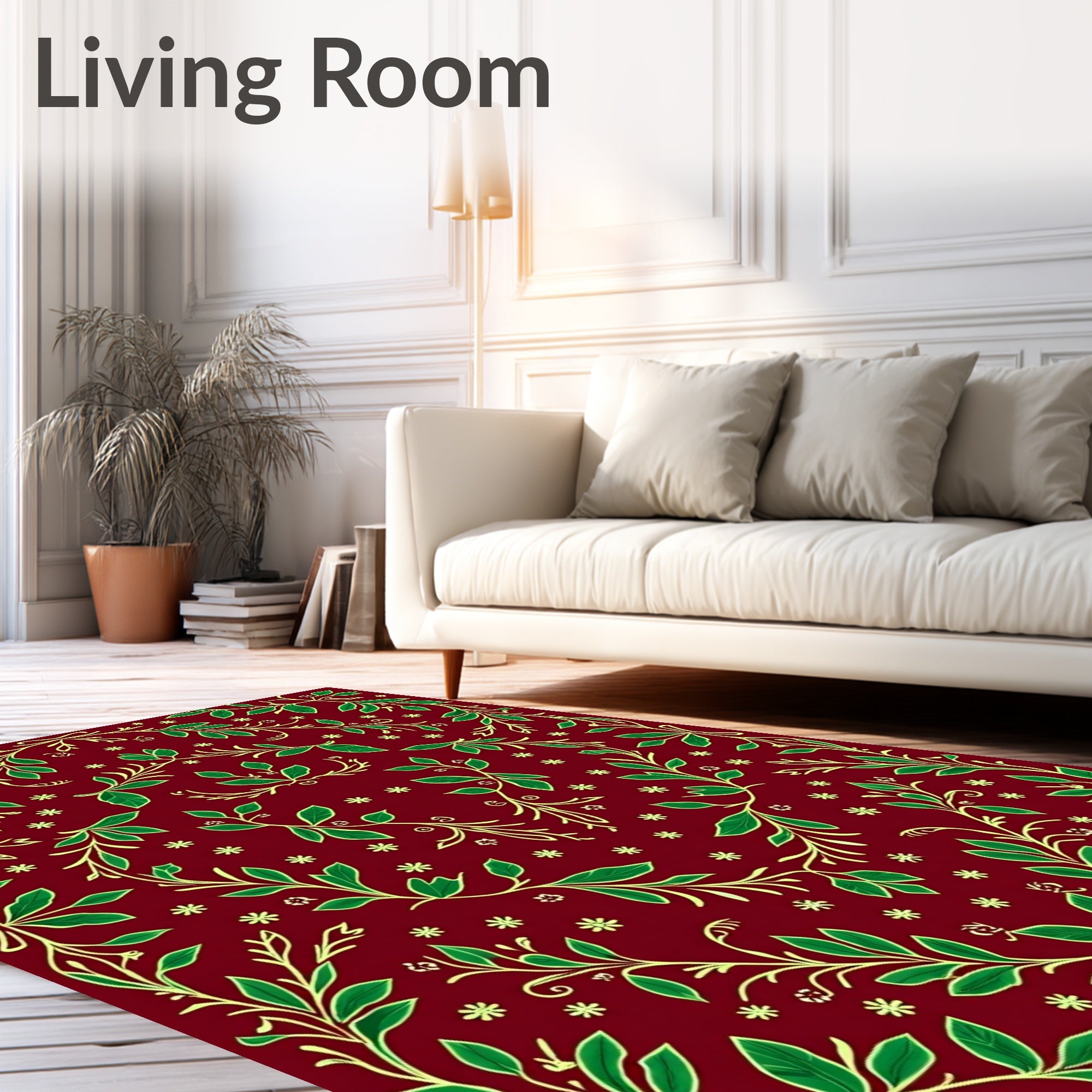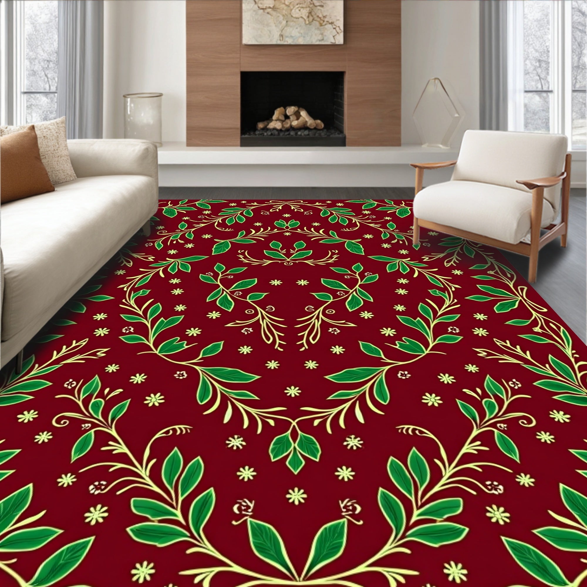 Ultra Soft Area Rug, Non Slip, Stain Resistant, Washable Area Rugs for Living Room, Bedroom, Holiday Pathway with Pine Branch Festive(Red) Overview: