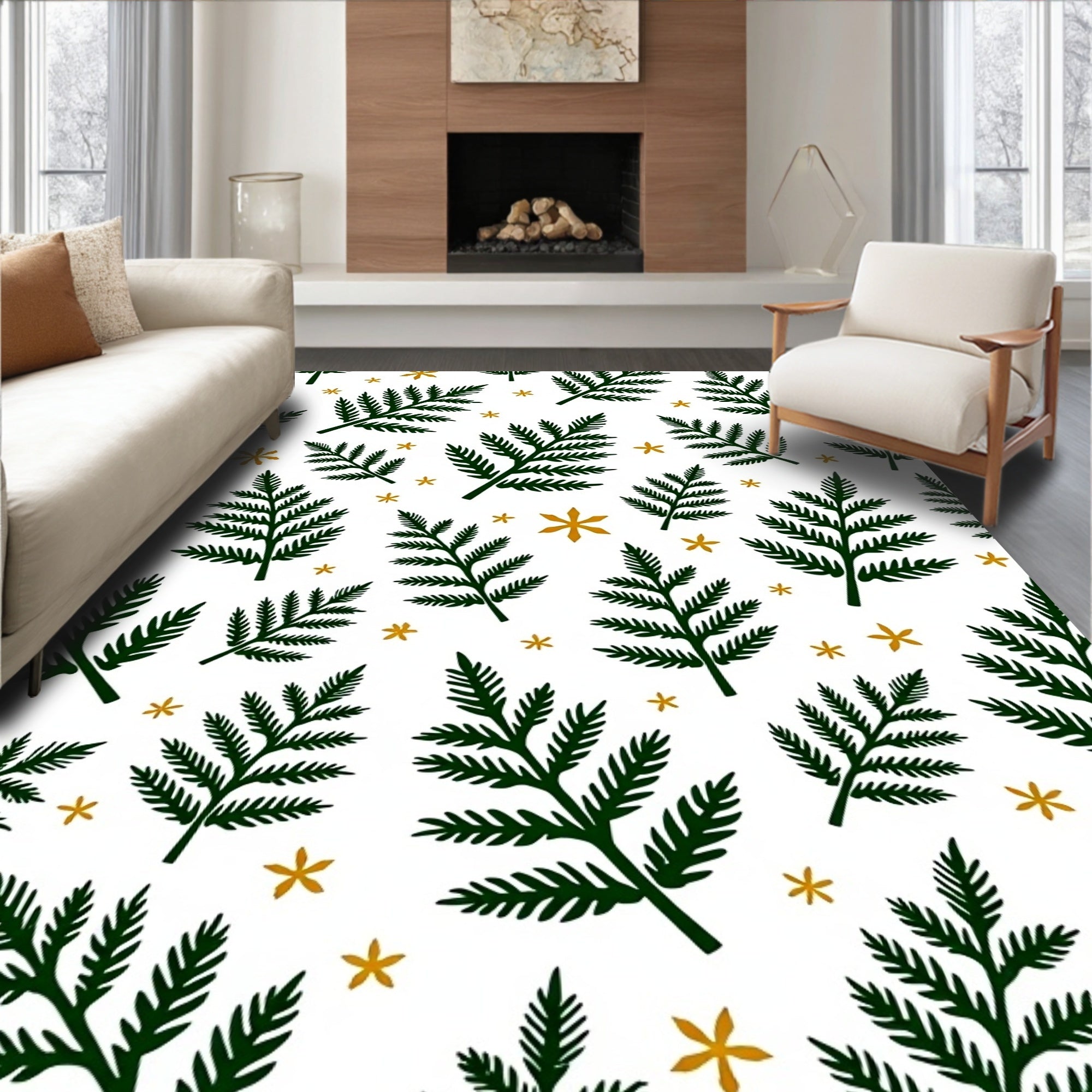 Ultra Soft Area Rug, Non Slip, Stain Resistant, Washable Area Rugs for Living Room, Bedroom, Holiday Pine Branch Featuring Evergreen Bough Designs(Green) Overview: