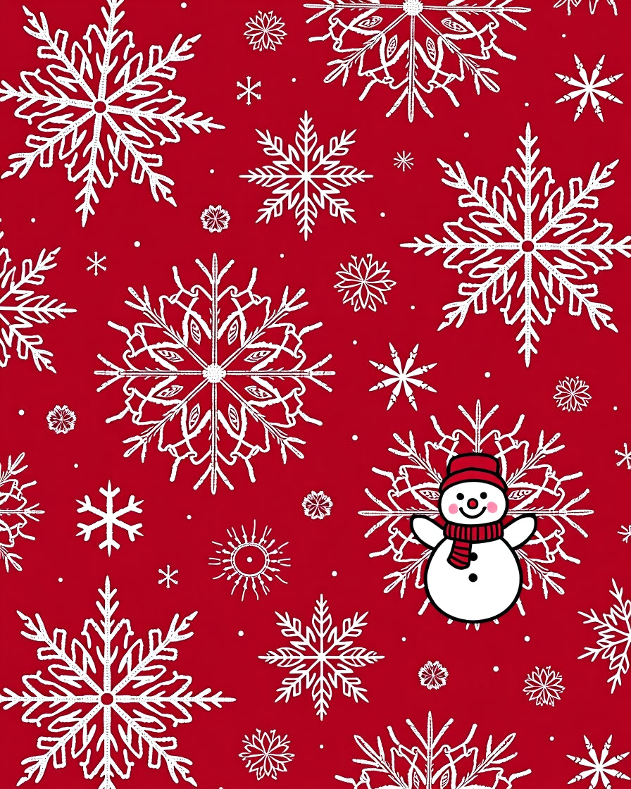 Holiday Snowflake Mosaic Featuring Jolly Snowman Illustration(Red)