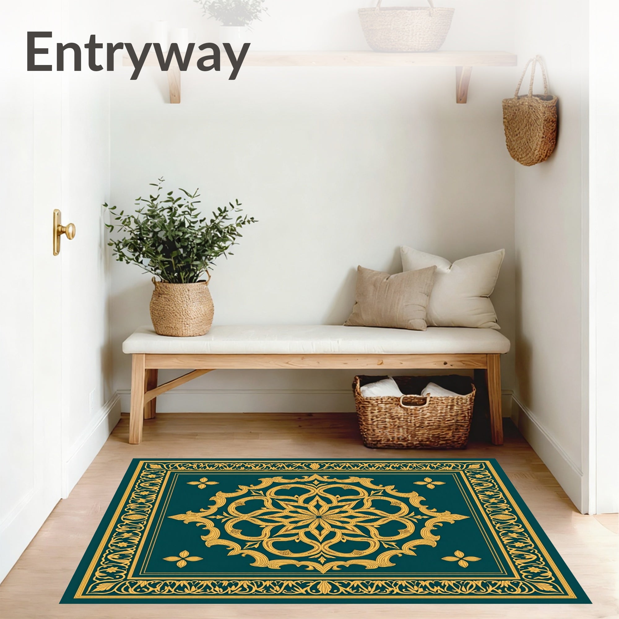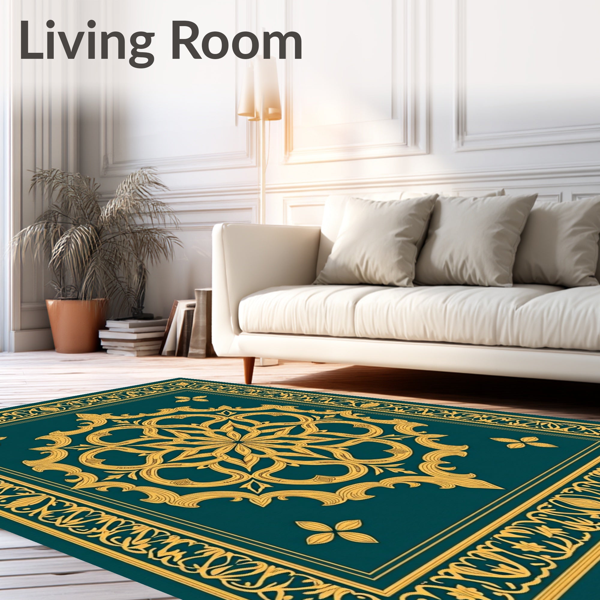 Ultra Soft Area Rug, Non Slip, Stain Resistant, Washable Area Rugs for Living Room, Bedroom, Holiday Starburst Arabesque with Golden Filigree Detailing(Gold) Overview:
