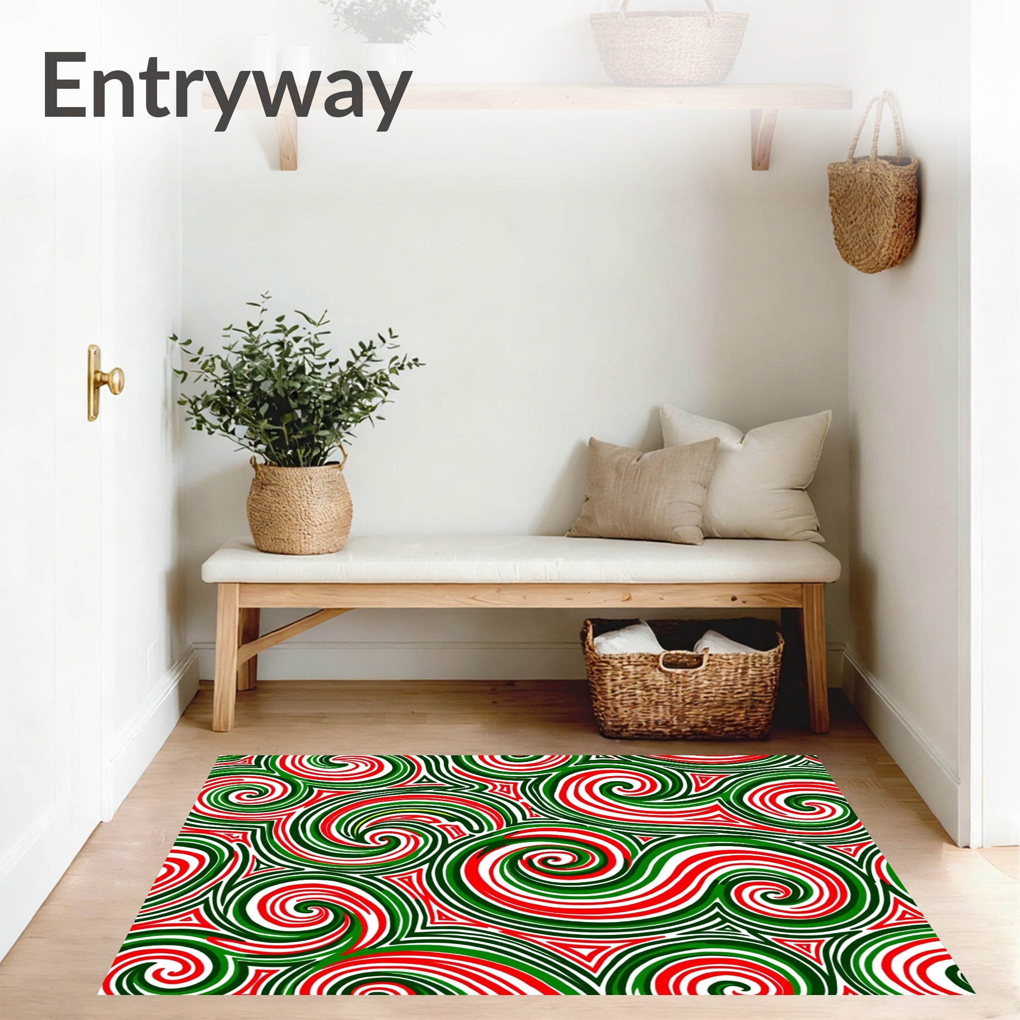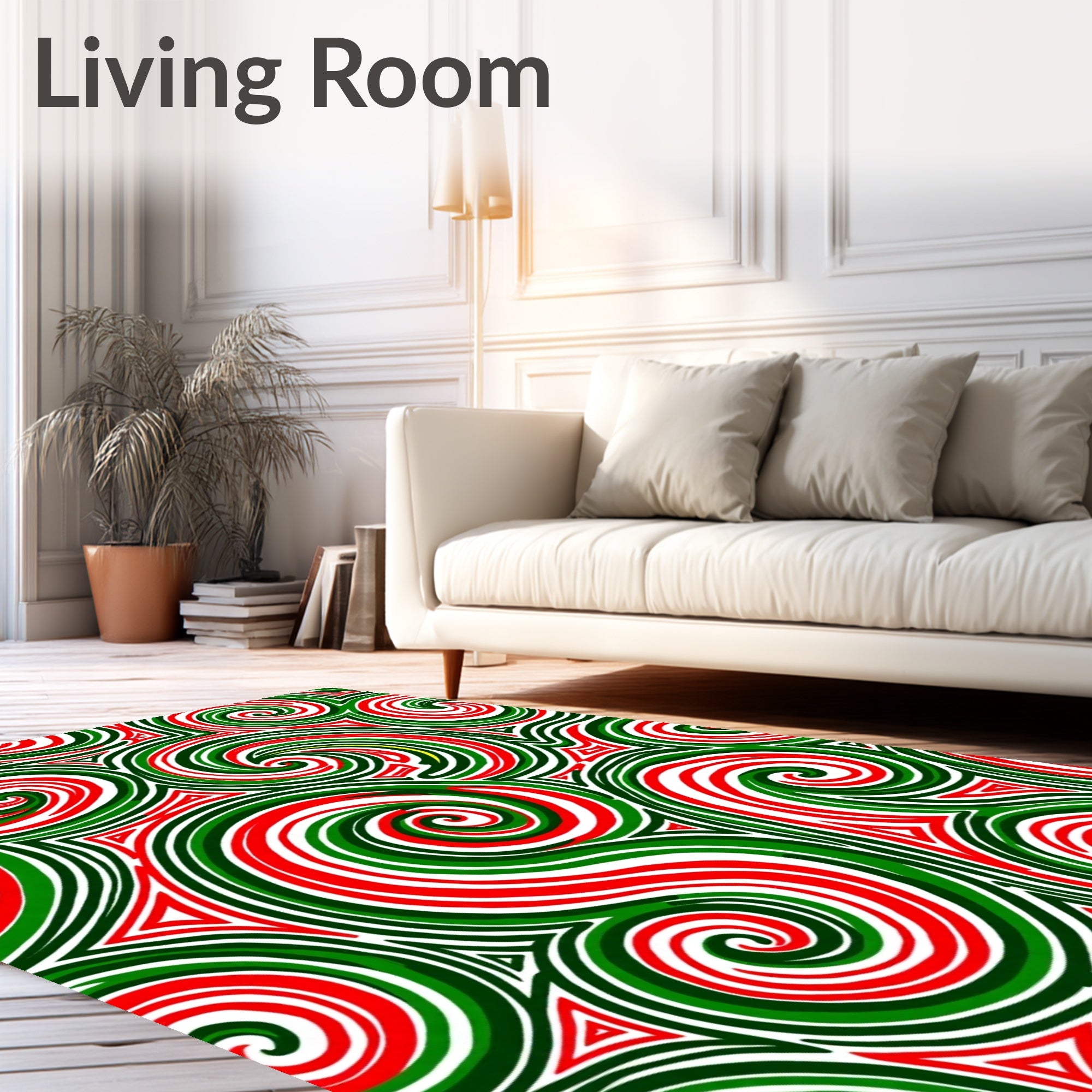 Ultra Soft Area Rug, Non Slip, Stain Resistant, Washable Area Rugs for Living Room, Bedroom, Holiday Swirl Semi Circle with Twisted Stripe Design(Red) Overview: