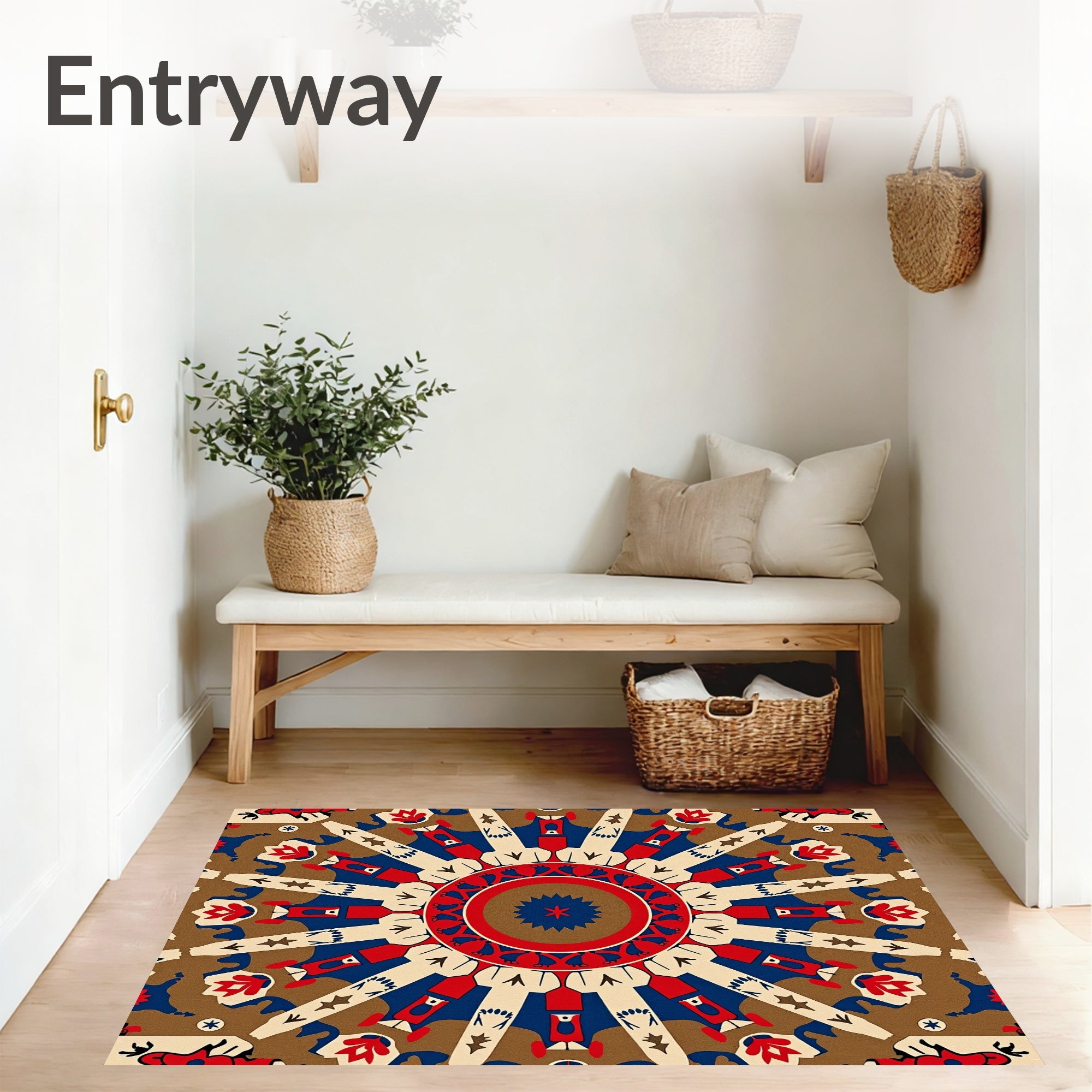 Ultra Soft Area Rug, Non Slip, Stain Resistant, Washable Area Rugs for Living Room, Bedroom, Holiday Toy Soldier Radial Display Decorative Floor Cover(Brown) Overview: