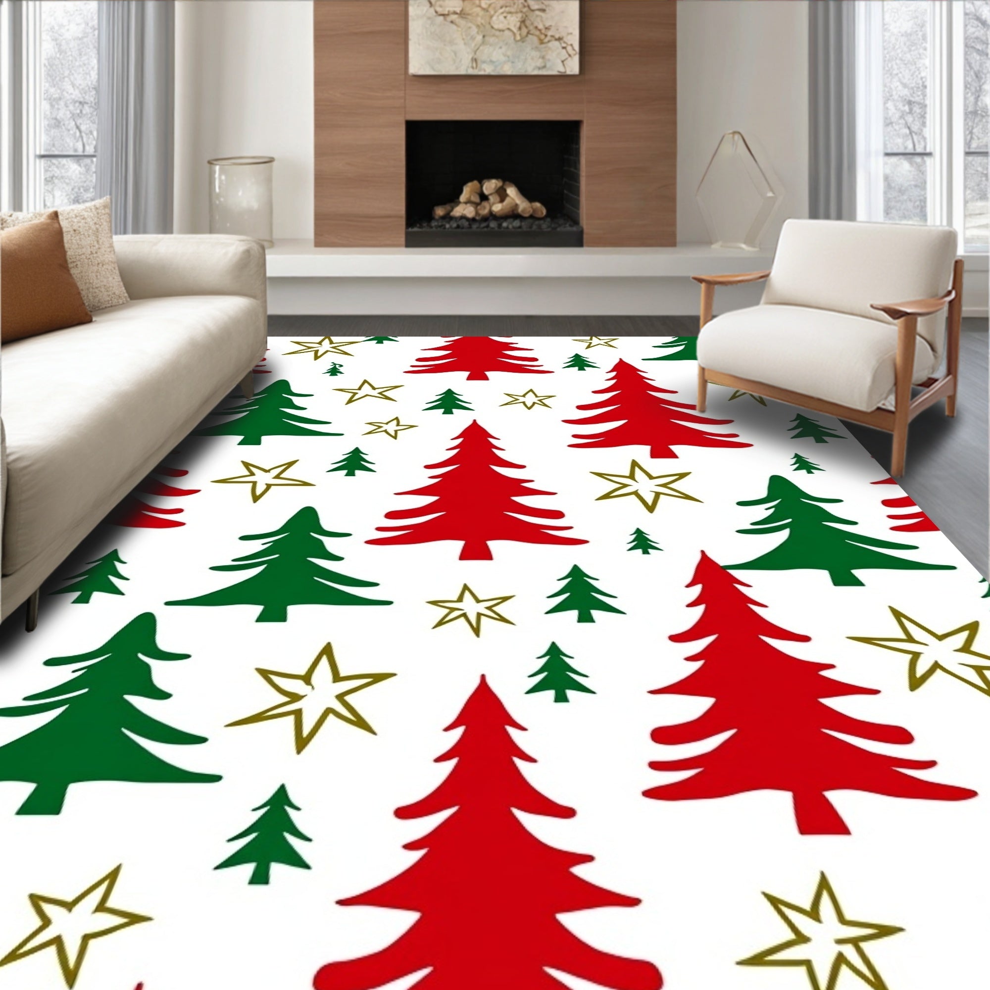 Ultra Soft Area Rug, Non Slip, Stain Resistant, Washable Area Rugs for Living Room, Bedroom, Holiday Tree with Decorative Pine Branch Motifs(Red) Overview: