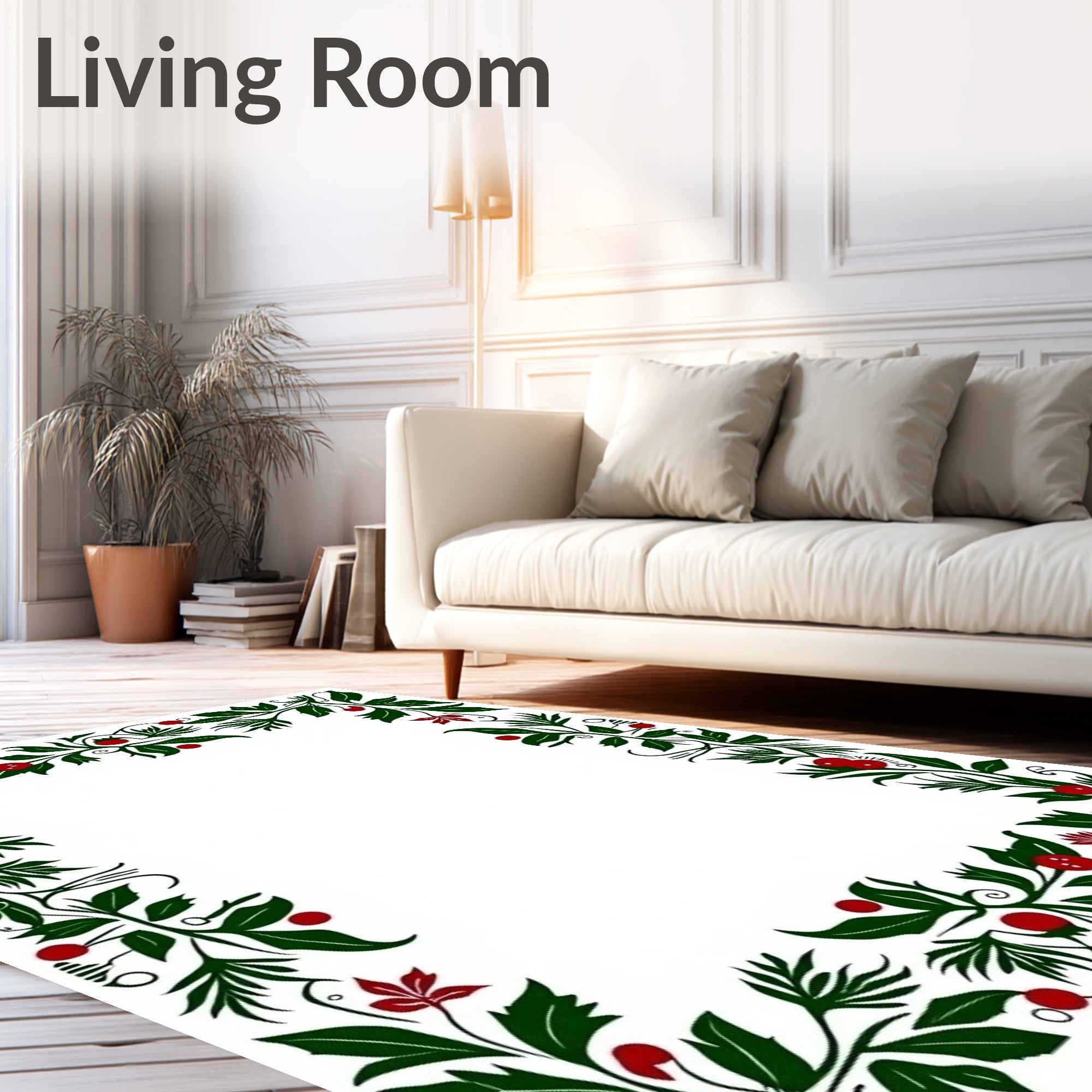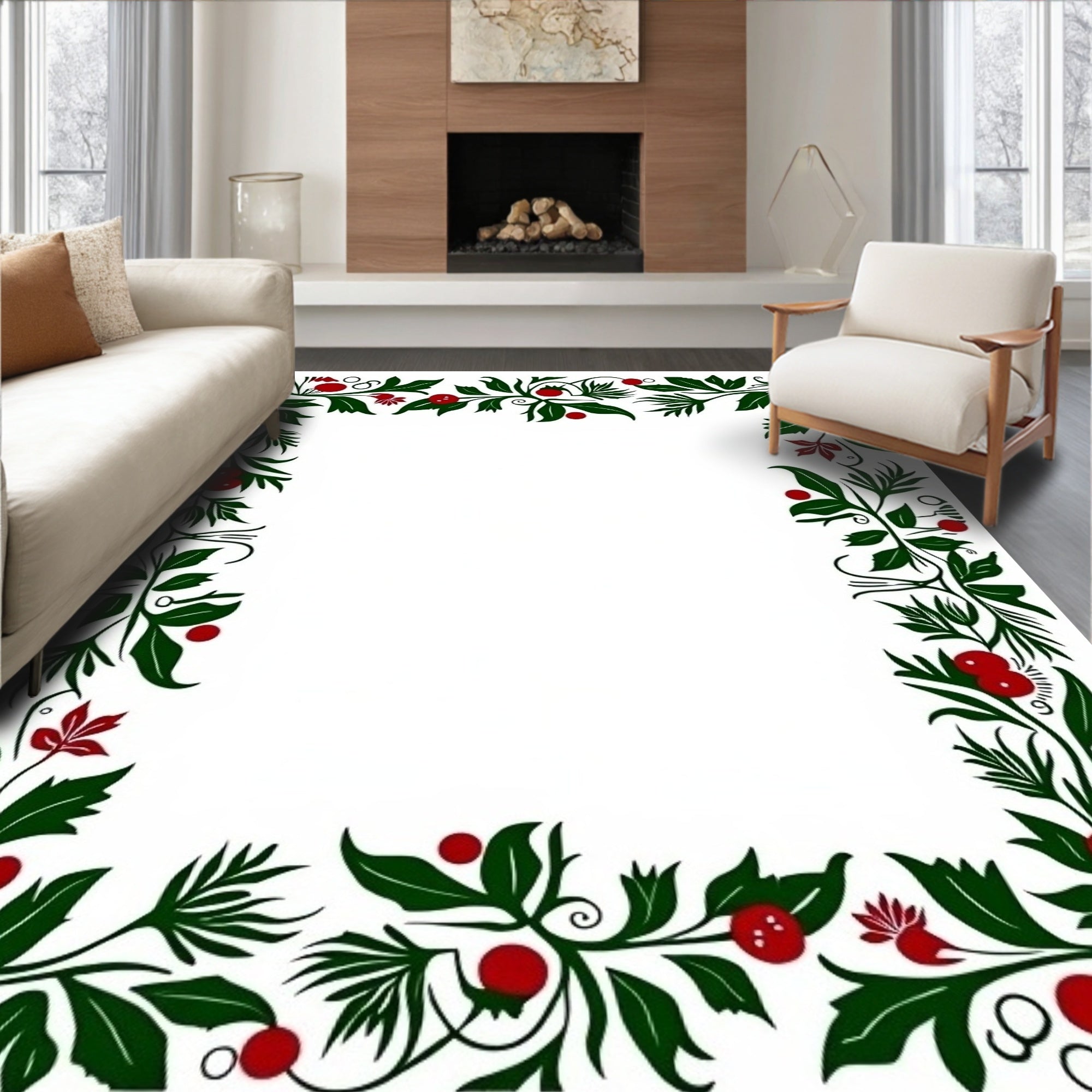 Ultra Soft Area Rug, Non Slip, Stain Resistant, Washable Area Rugs for Living Room, Bedroom, Holiday with Holly Leaf Accents(Green) Overview: