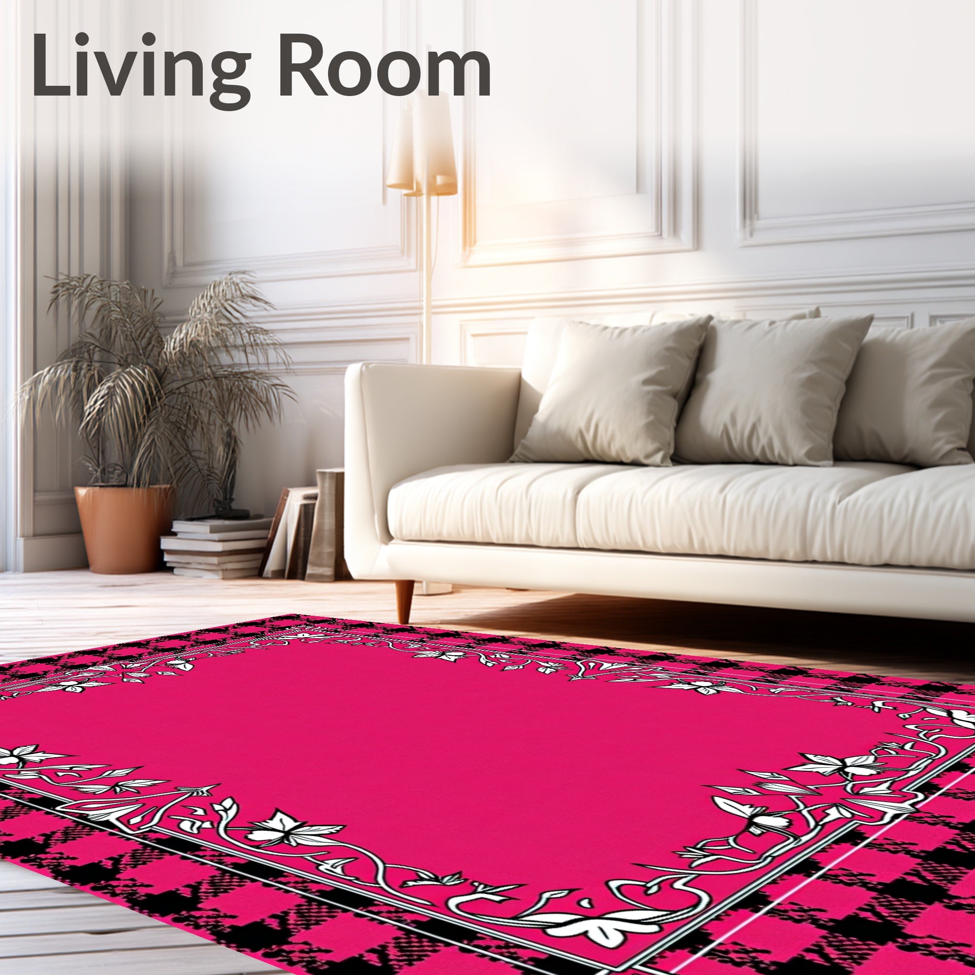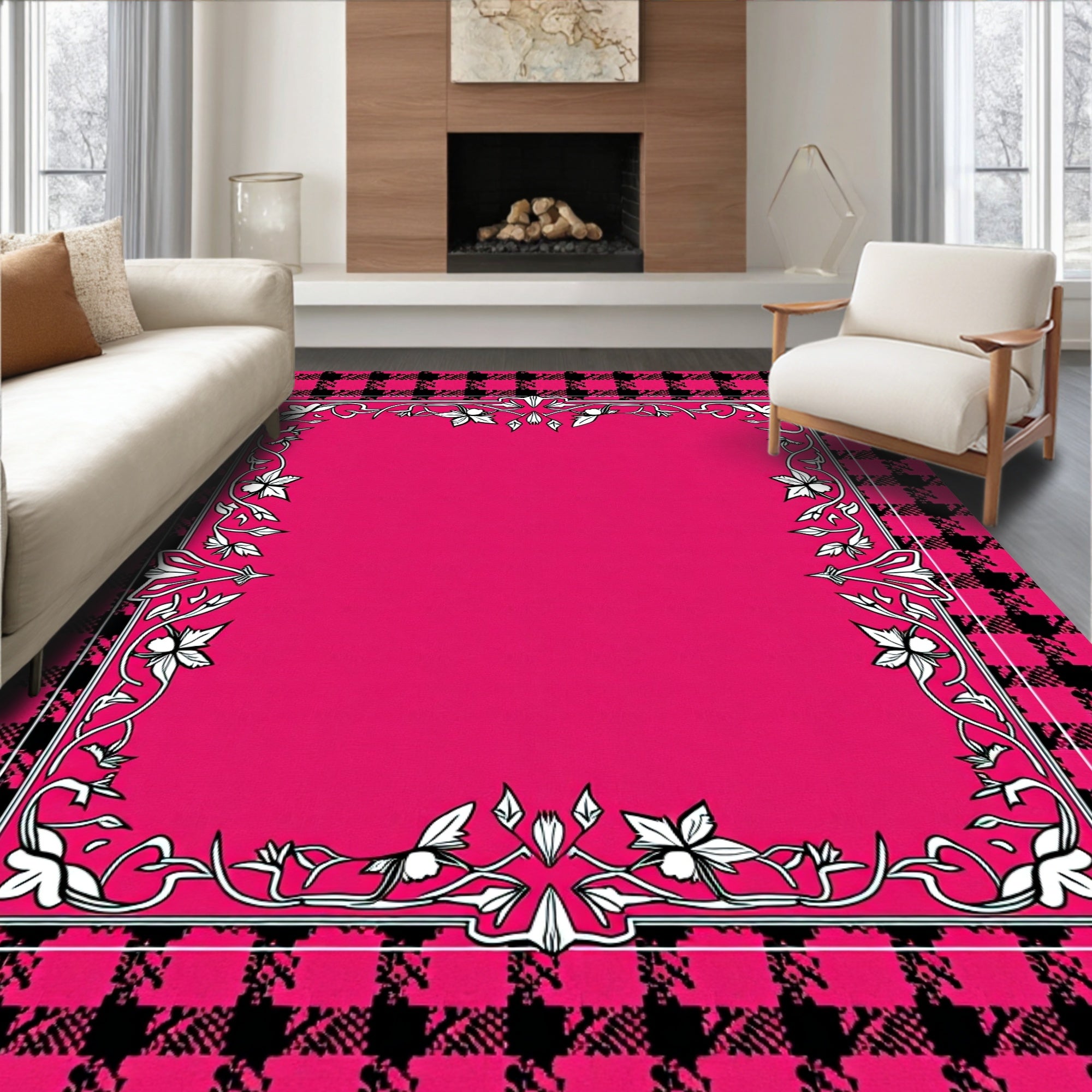 Ultra Soft Area Rug, Non Slip, Stain Resistant, Washable Area Rugs for Living Room, Bedroom, Holly Berry Festive Welcome with Traditional Plaid Design(Pink) Overview: