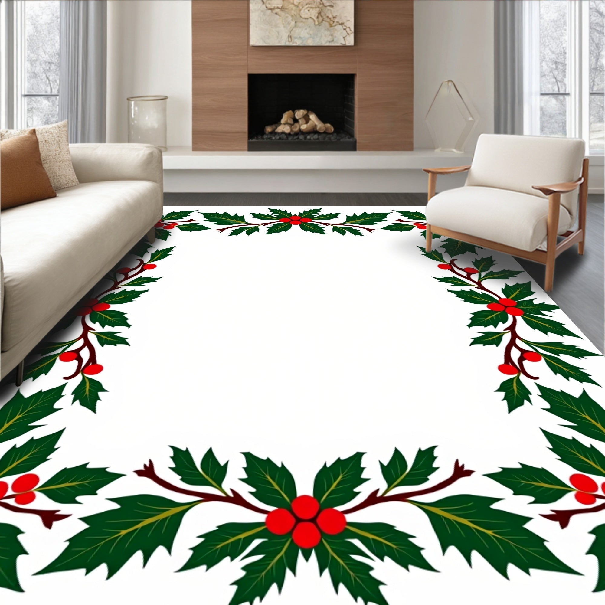 Ultra Soft Area Rug, Non Slip, Stain Resistant, Washable Area Rugs for Living Room, Bedroom, Holly Berry Vine Border Traditional Christmas Floor(Green) Overview: