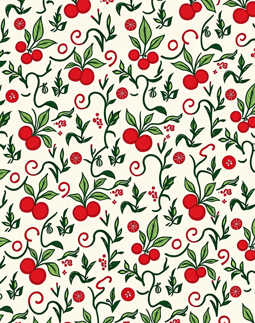 Holly Berry Vine with Traditional Yuletide Botanical Print(Red)