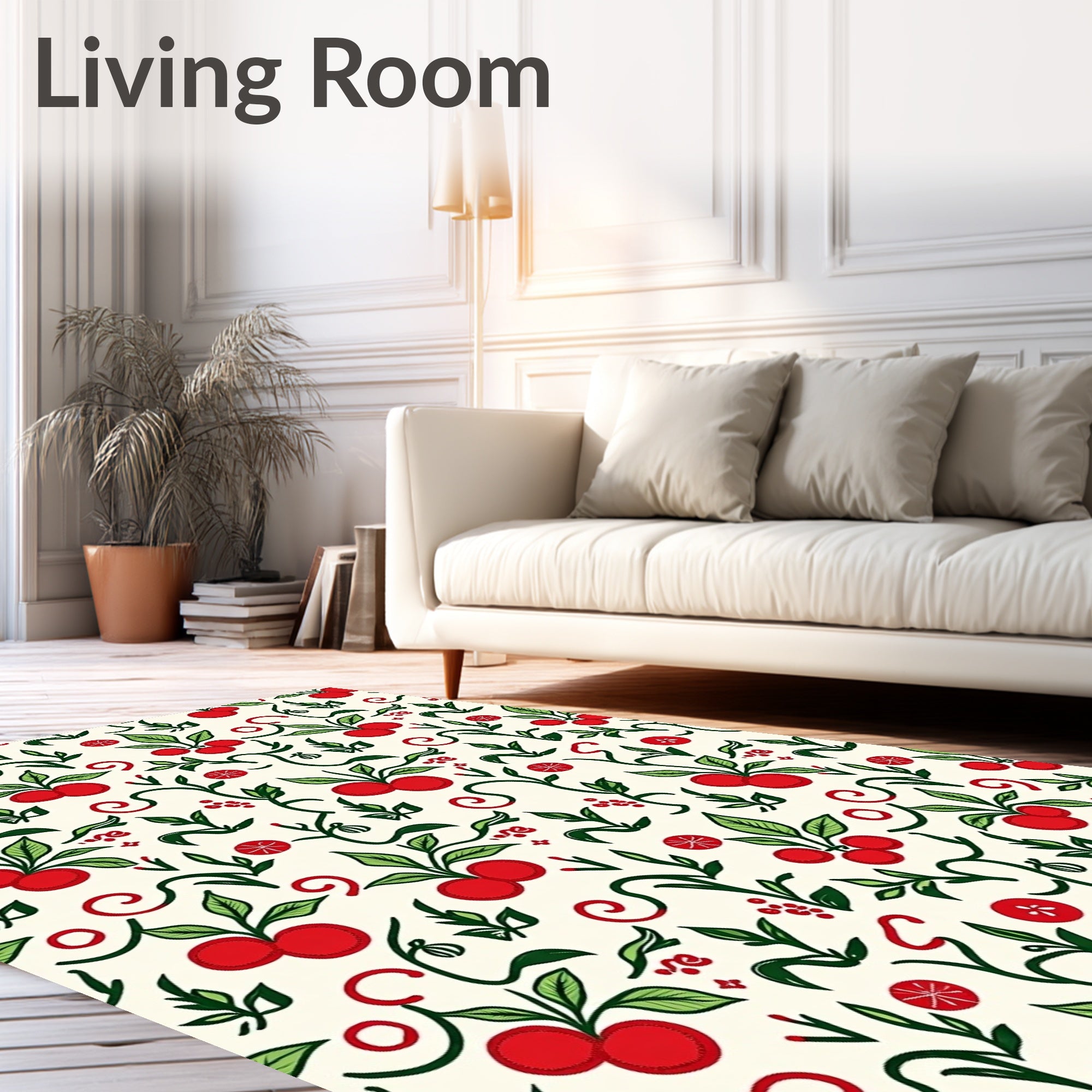 Ultra Soft Area Rug, Non Slip, Stain Resistant, Washable Area Rugs for Living Room, Bedroom, Holly Berry Vine with Traditional Yuletide Botanical Print(Red) Overview: