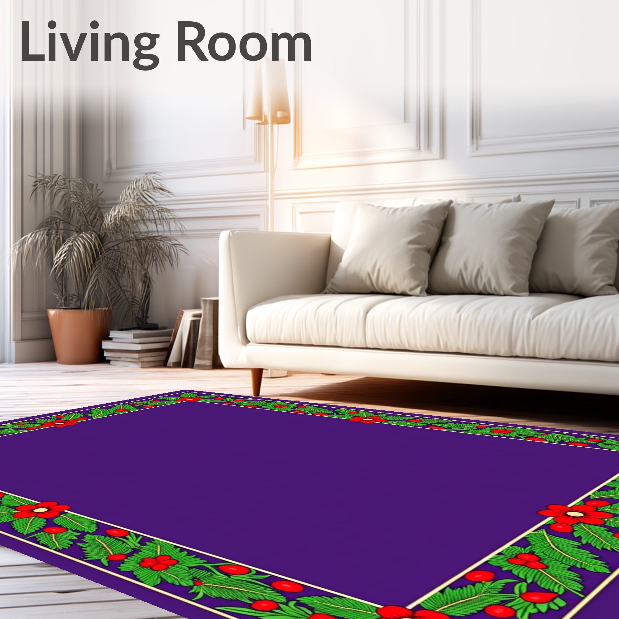 Flatwoven High Traffic Area Rug, Holly Berry Wreath Christmas Decorative with Pine Needle Design, Non Slip, Stain Resistant, Washable Area Rugs for Living Room, Bedroom (Purple) Overview: