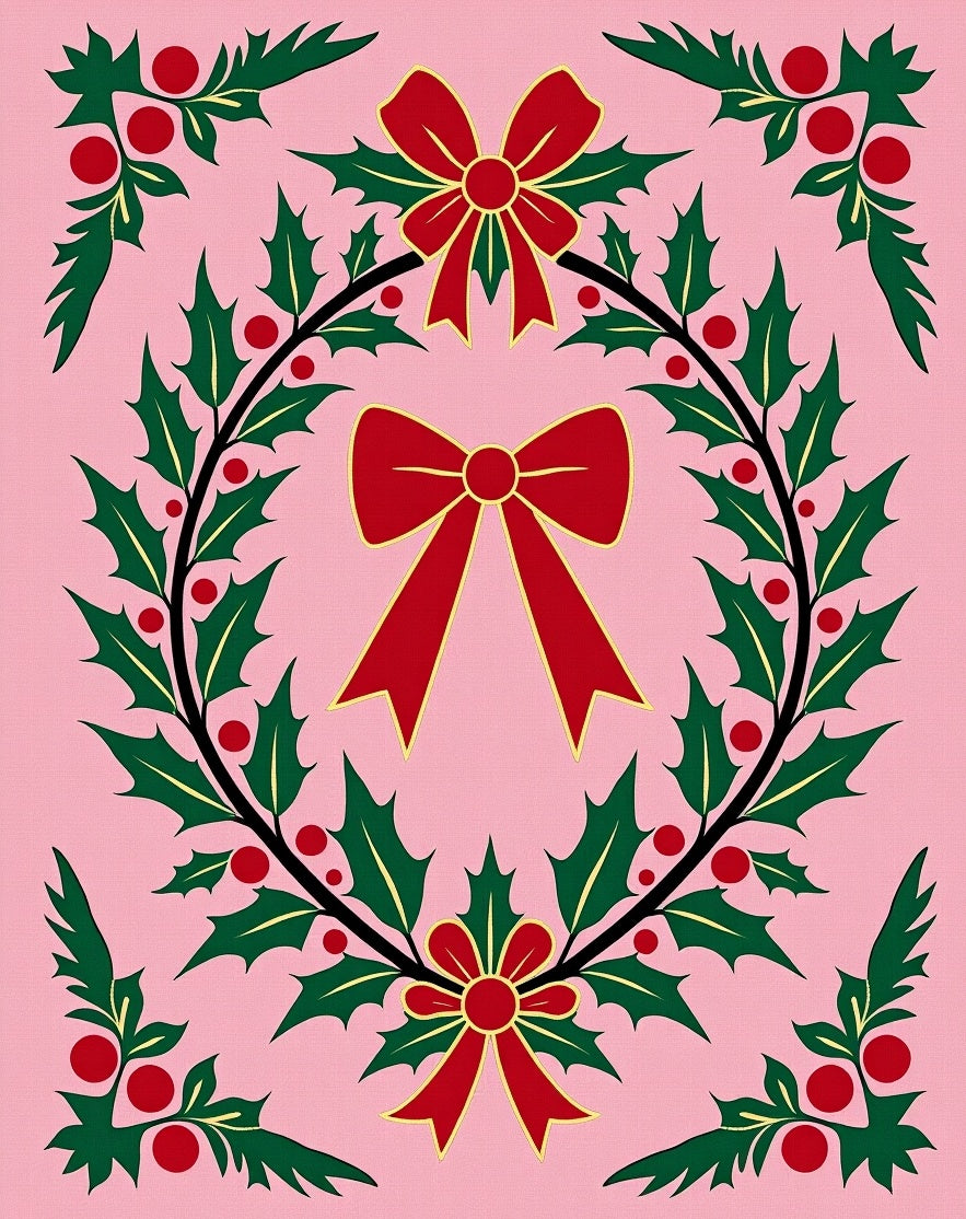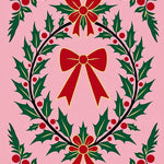 Holly Berry Wreath Design Welcome with Festive Bow Accent(Pink)
