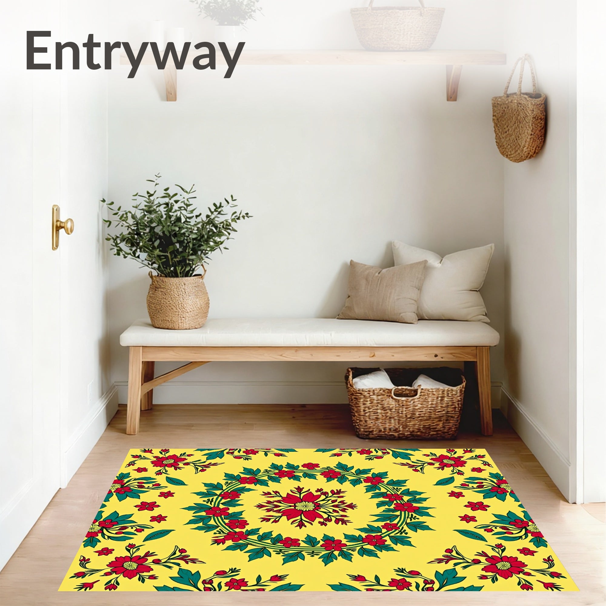 Flatwoven High Traffic Area Rug, Holly Berry Wreath Entryway, Non Slip, Stain Resistant, Washable Area Rugs for Living Room, Bedroom (Yellow) Overview: