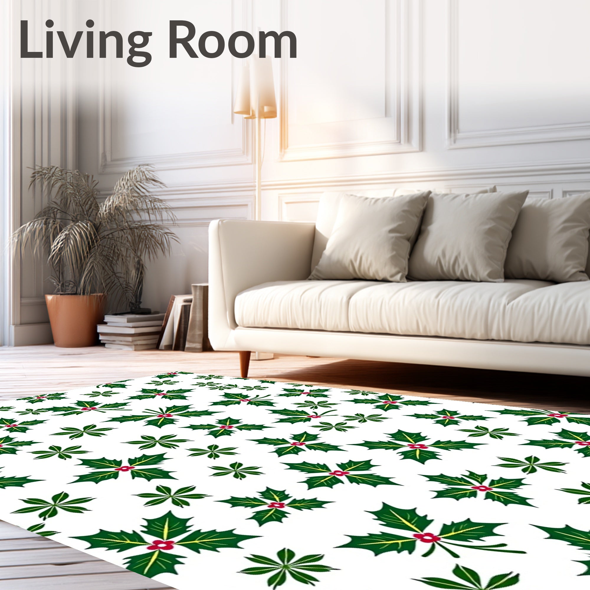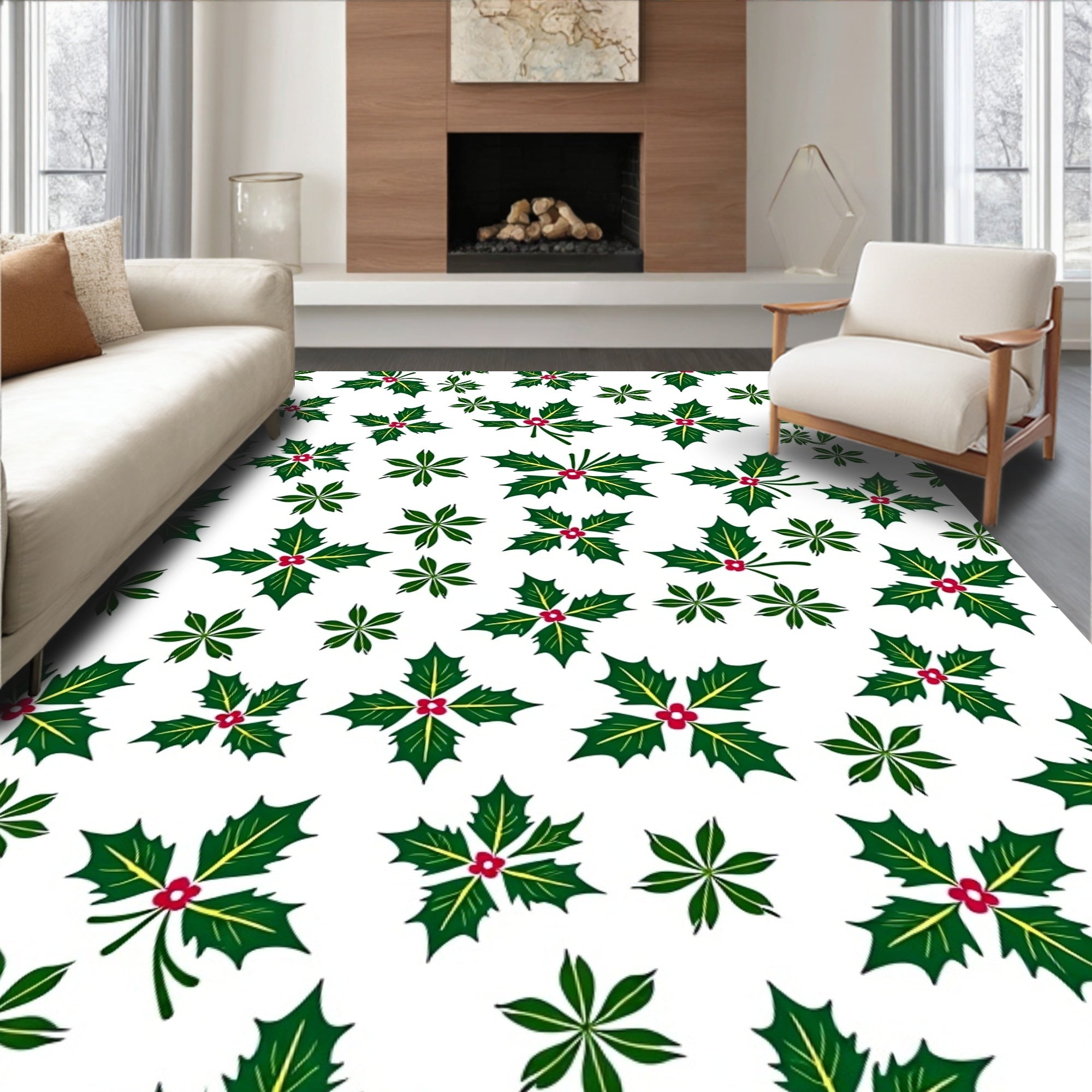 Ultra Soft Area Rug, Non Slip, Stain Resistant, Washable Area Rugs for Living Room, Bedroom, Holly Berry Wreath Festive with Traditional Holiday Motifs(Green) Overview: