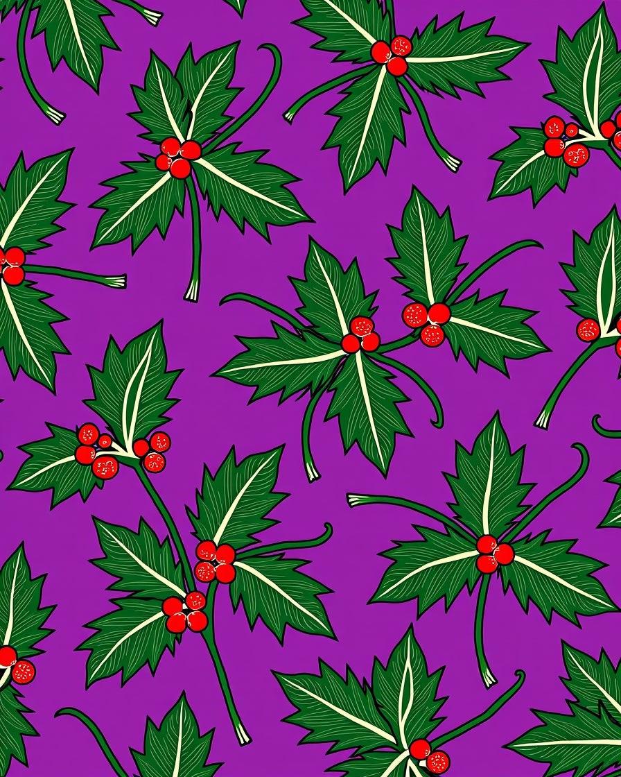 Holly Leaves Berries Christmas with Traditional Botanical Design(Purple)