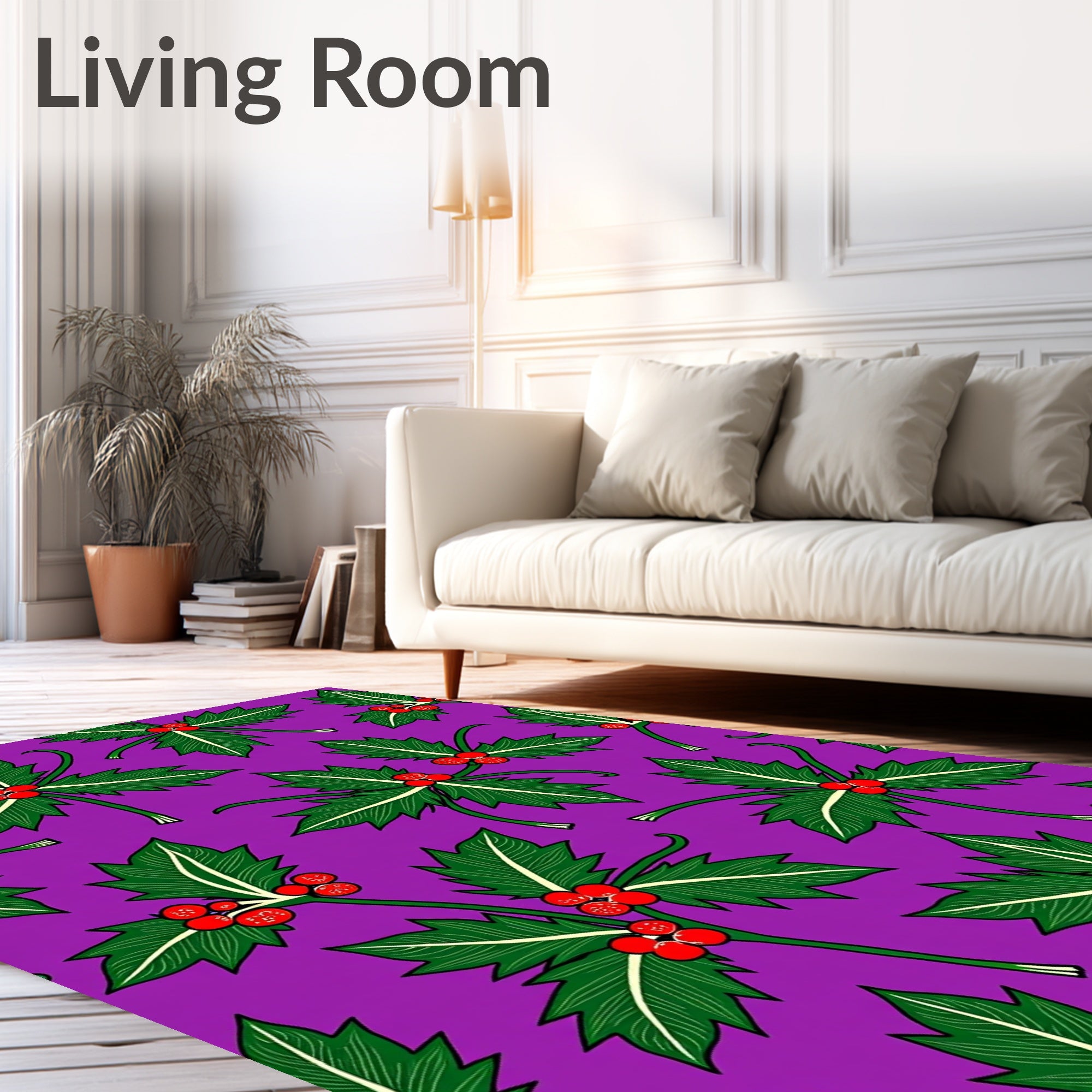 Flatwoven High Traffic Area Rug, Holly Leaves Berries Christmas with Traditional Botanical Design, Non Slip, Stain Resistant, Washable Area Rugs for Living Room, Bedroom (Purple) Overview: