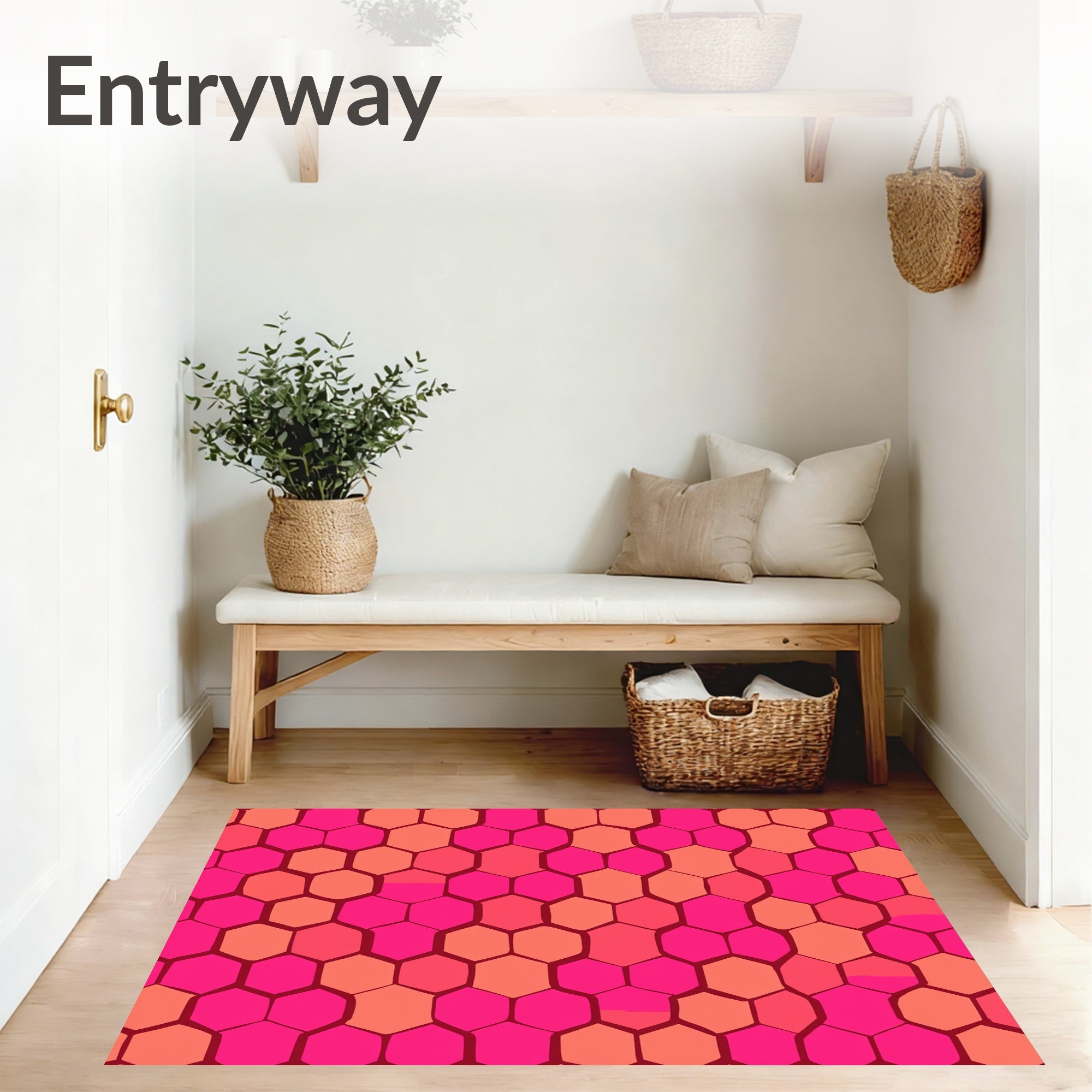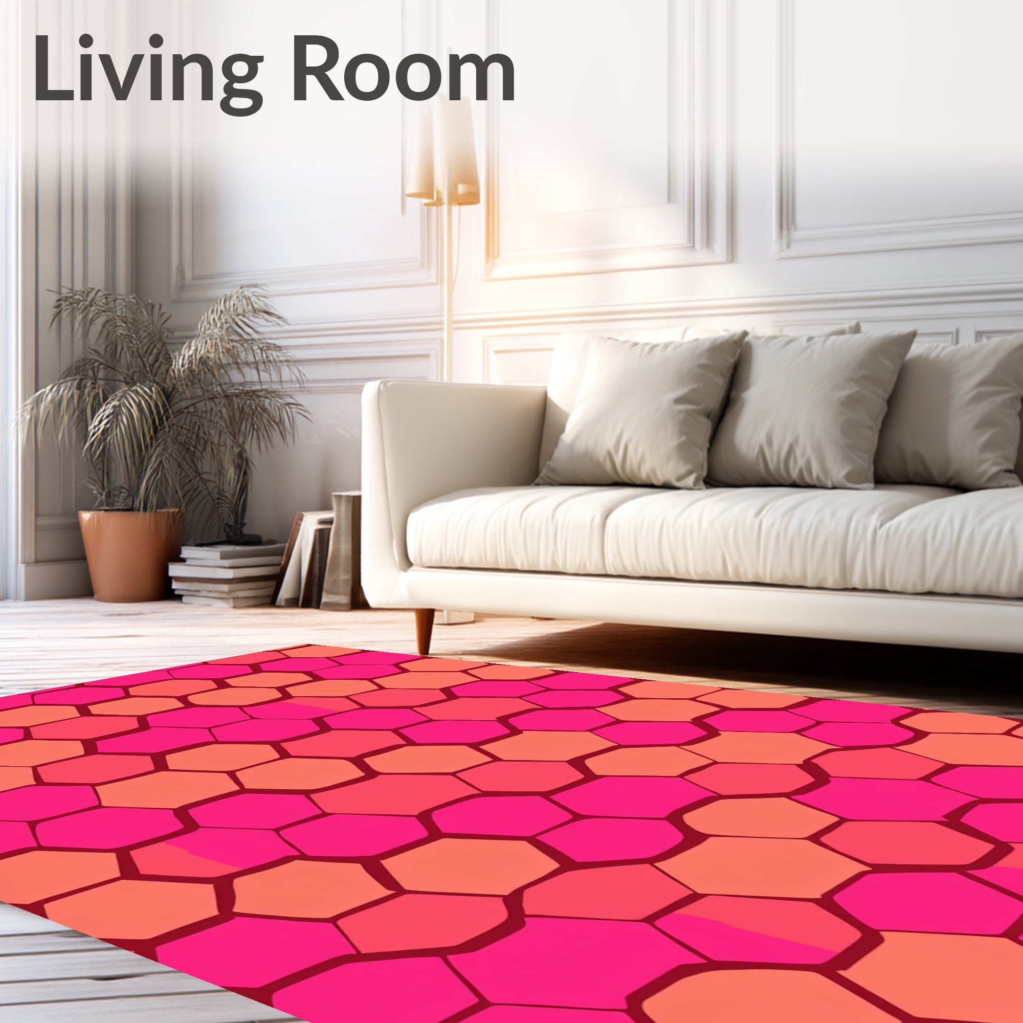 Ultra Soft Area Rug, Non Slip, Stain Resistant, Washable Area Rugs for Living Room, Bedroom, Honeycomb Hexagon Mosaic with Gradient Transitions(Pink) Overview: