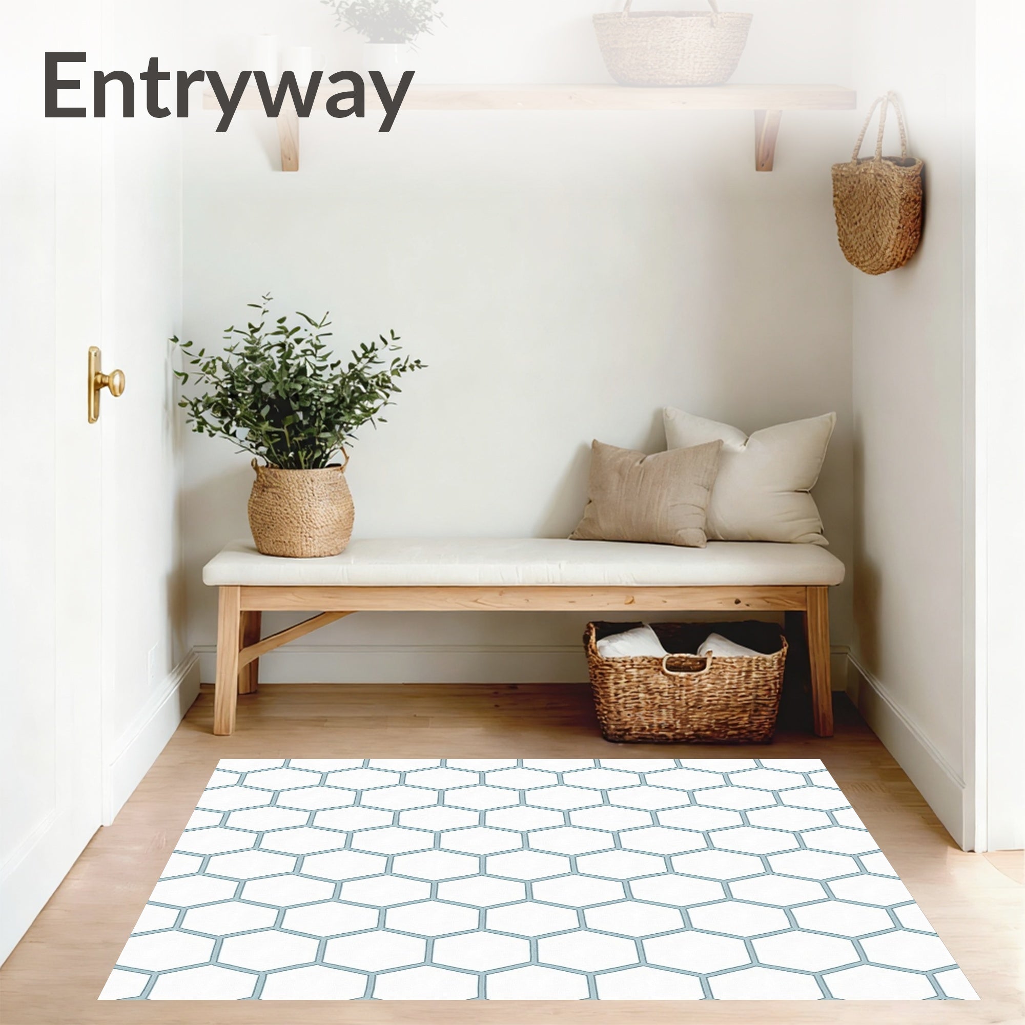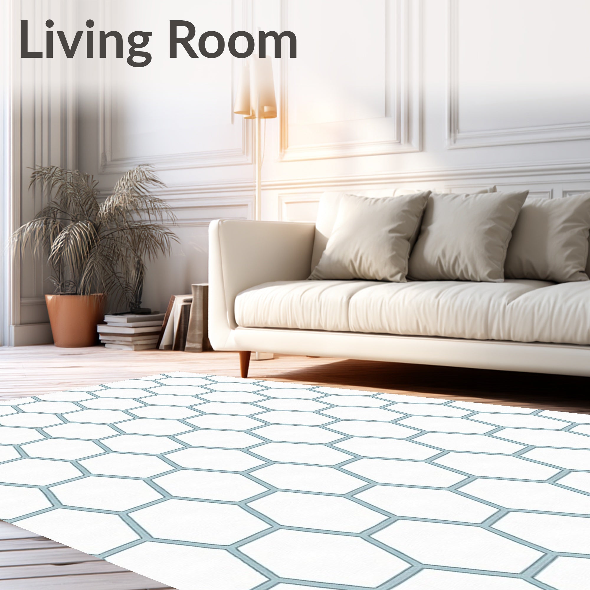 Ultra Soft Area Rug, Non Slip, Stain Resistant, Washable Area Rugs for Living Room, Bedroom, Honeycomb Hexagonal Grid Artistic Minimalist Zen(White) Overview:
