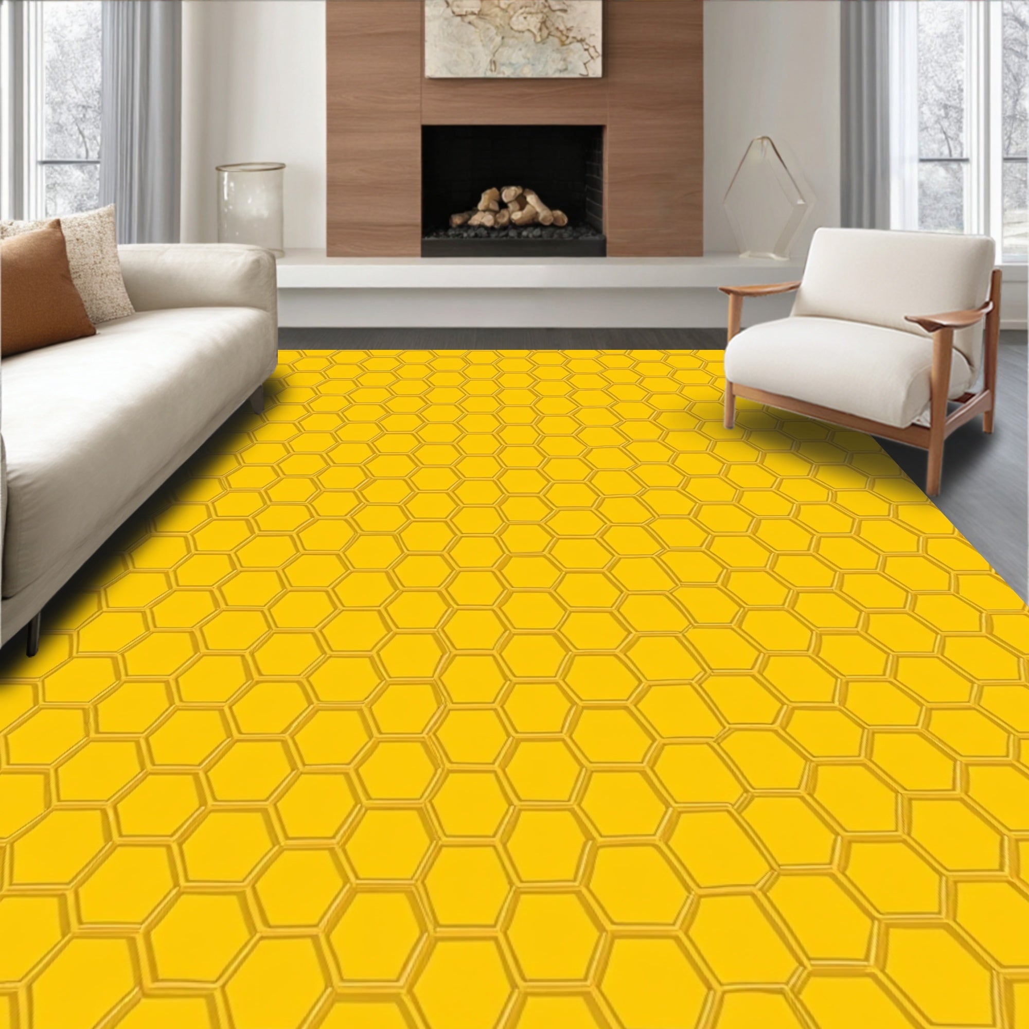 Ultra Soft Area Rug, Non Slip, Stain Resistant, Washable Area Rugs for Living Room, Bedroom, Honeycomb Hexagonal Lattice Modern(Yellow) Overview: