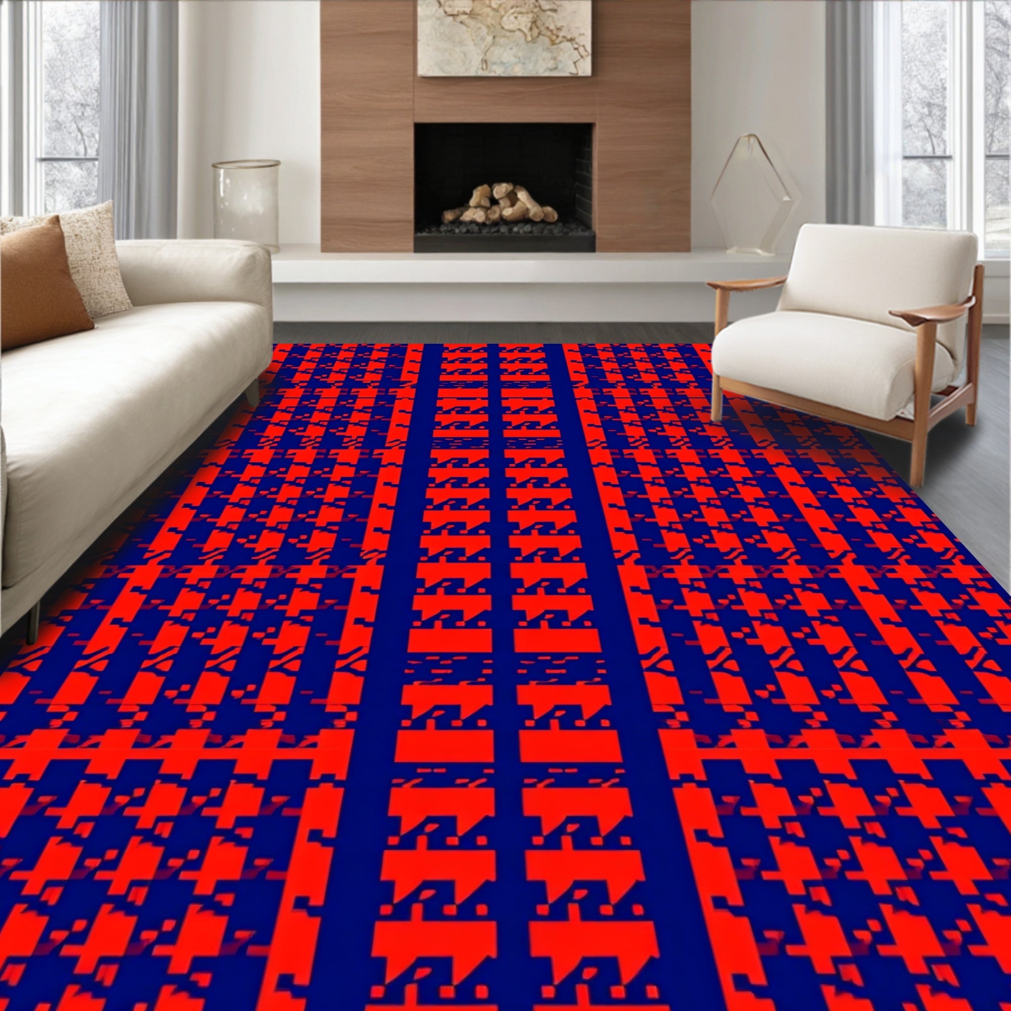 Flatwoven High Traffic Area Rug, Houndstooth Displaying Interlocking Tooth Like Shapes, Non Slip, Stain Resistant, Washable Area Rugs for Living Room, Bedroom (Red) Overview: