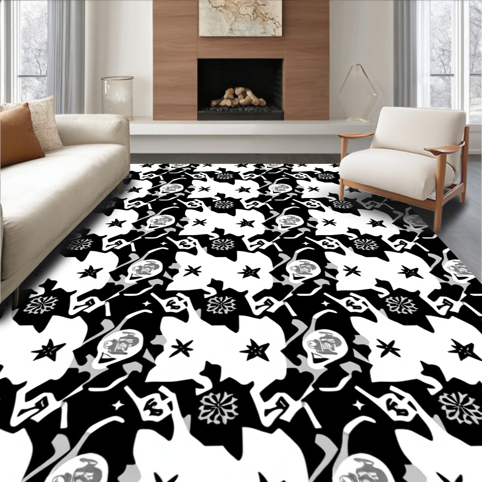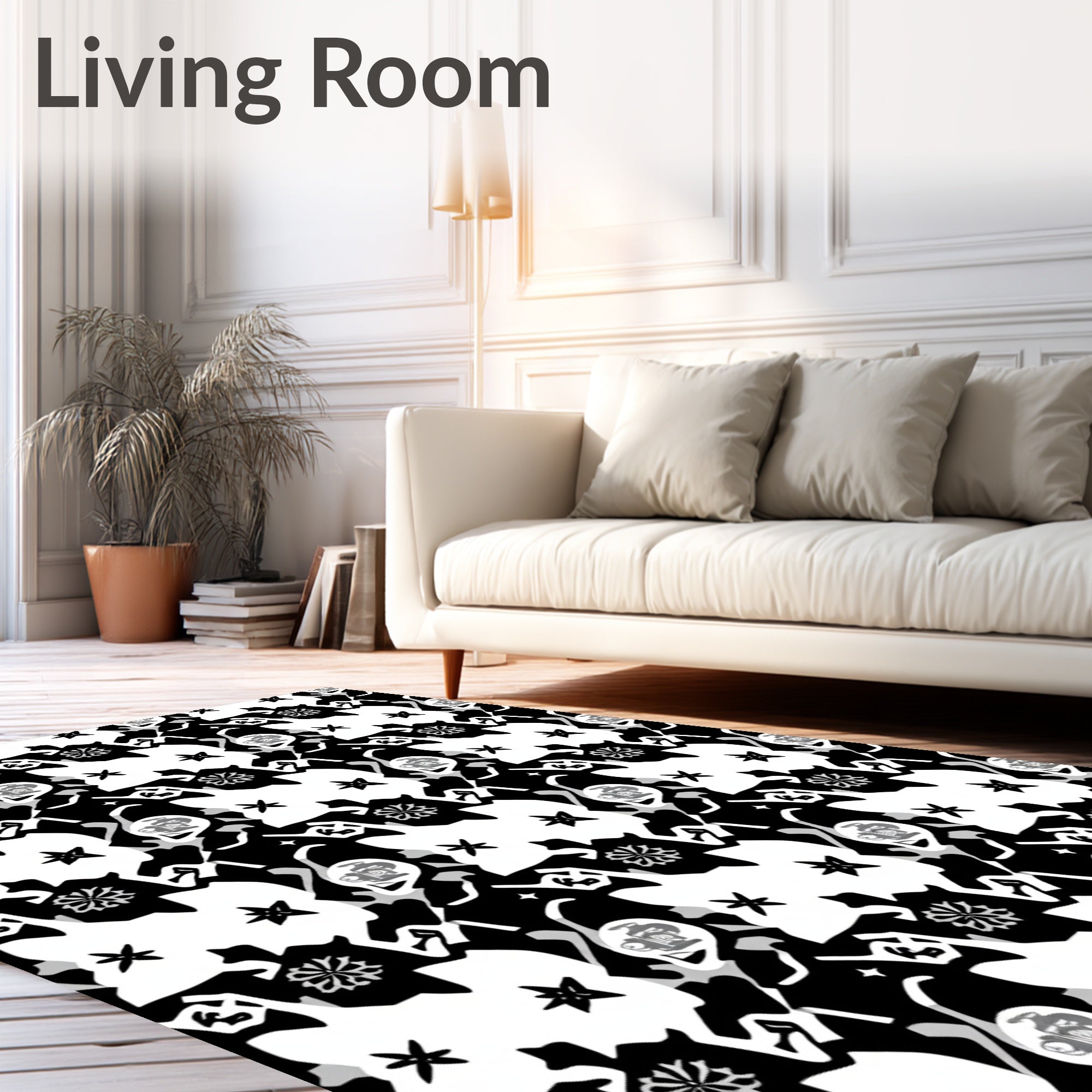 Ultra Soft Area Rug, Non Slip, Stain Resistant, Washable Area Rugs for Living Room, Bedroom, Houndstooth Texture with Medallion Overlay(Black) Overview: