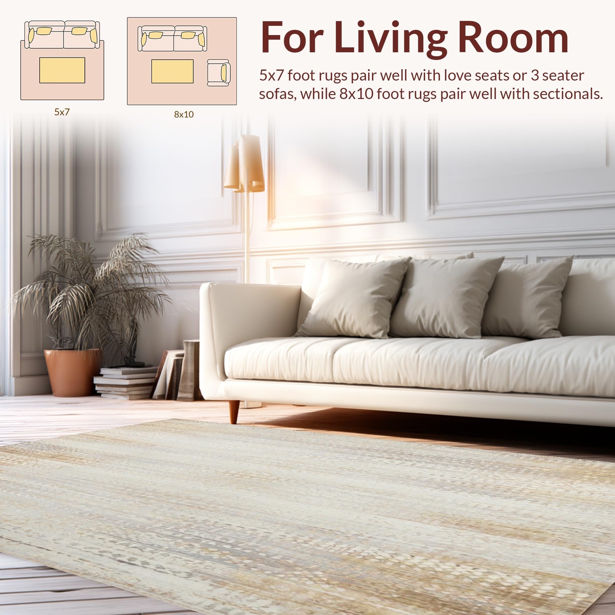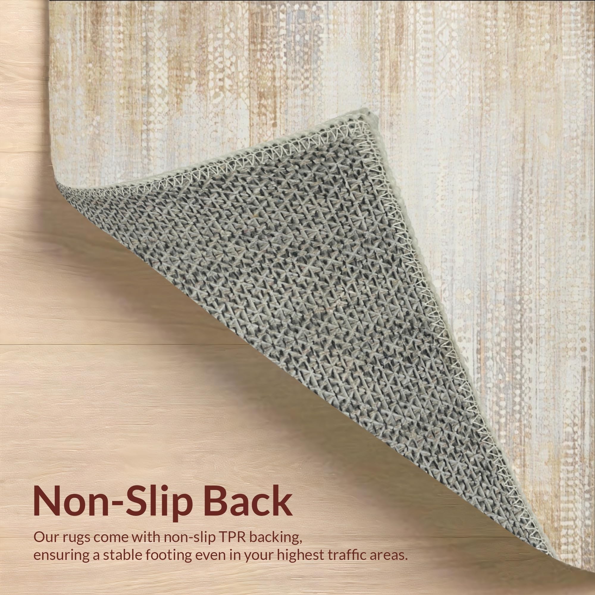 Ultra Soft Area Rug, Non Slip, Stain Resistant, Washable Area Rugs for Living Room, Bedroom, Hues Vintage Distressed Area in Beige Sand(Beige) Overview: