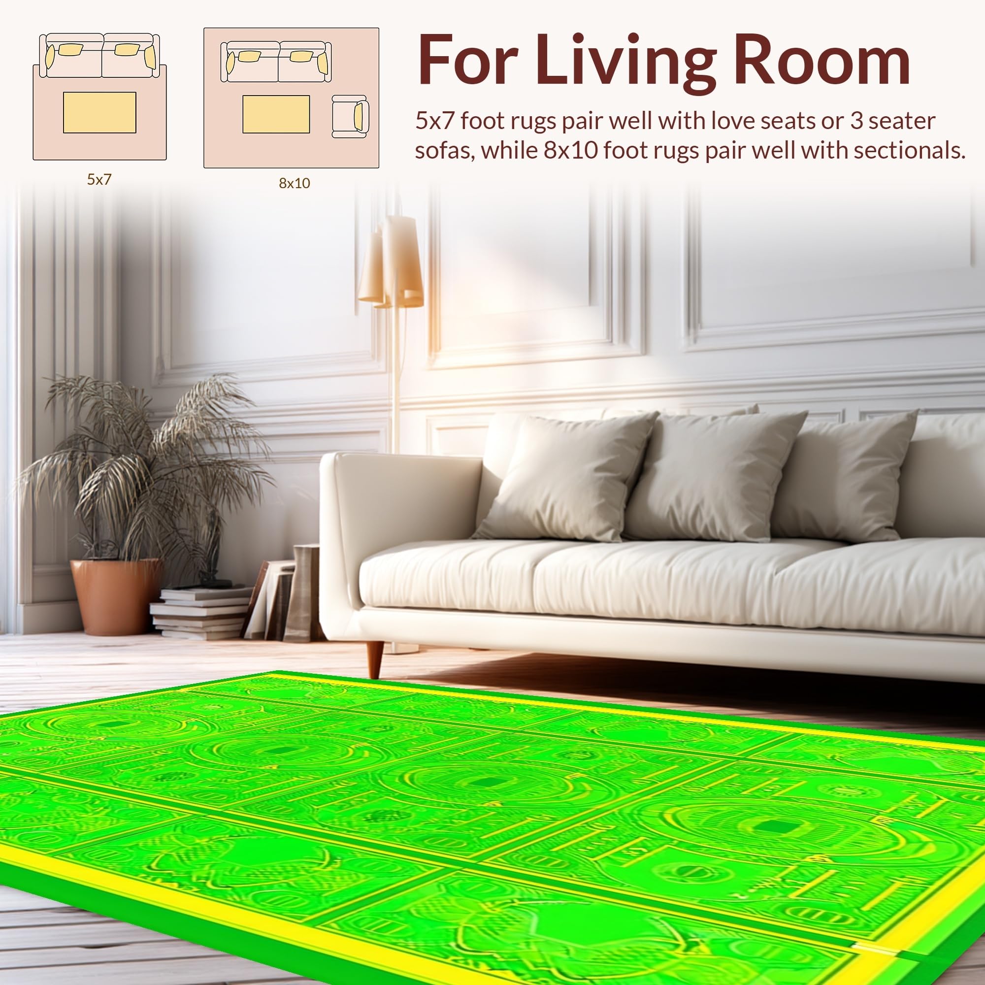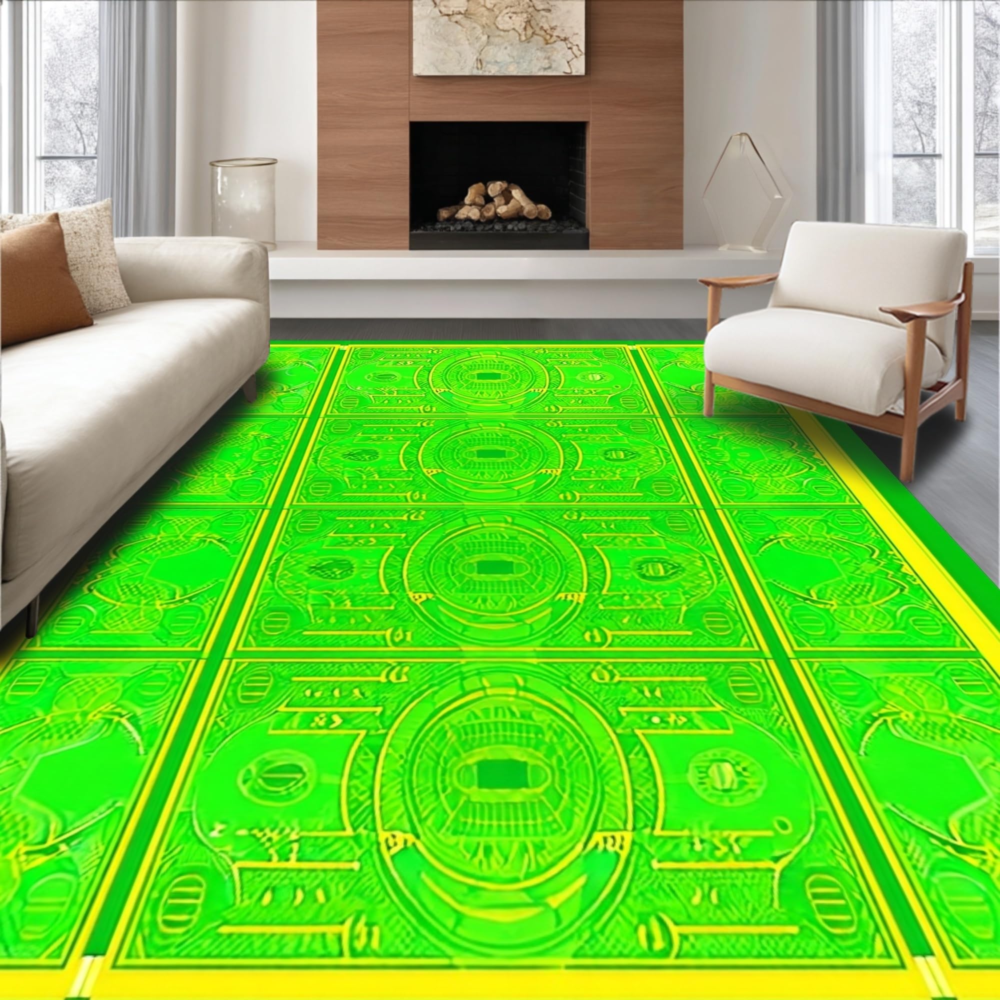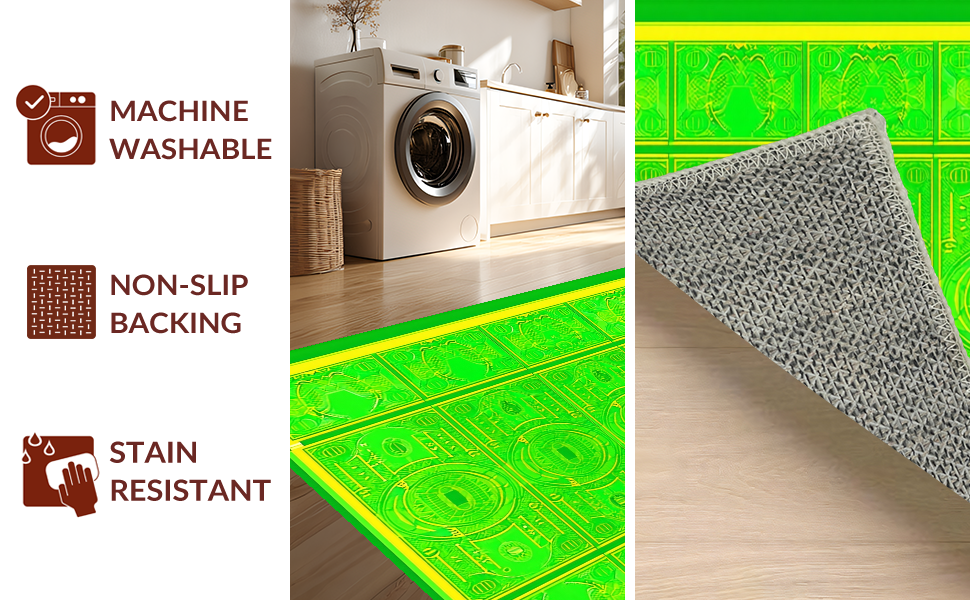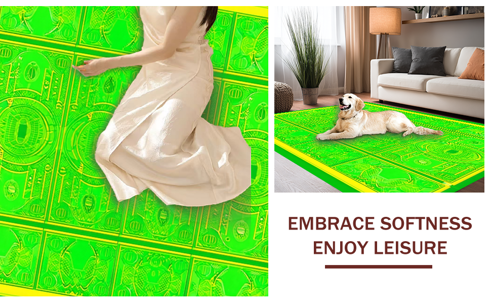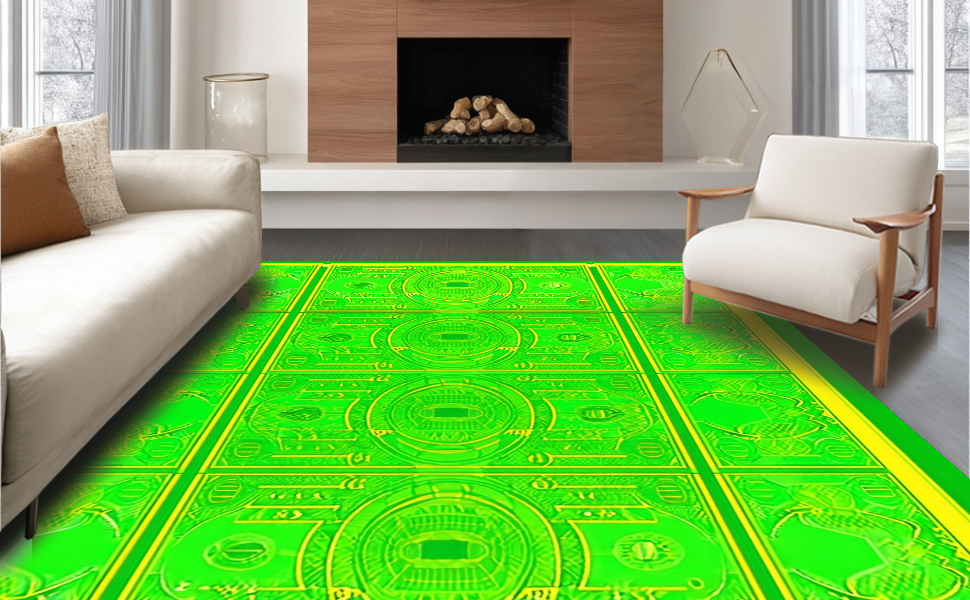 Ultra Soft Area Rug, Non Slip, Stain Resistant, Washable Area Rugs for Living Room, Bedroom, Humorous Cash Symbol Art Style(Green) Overview: