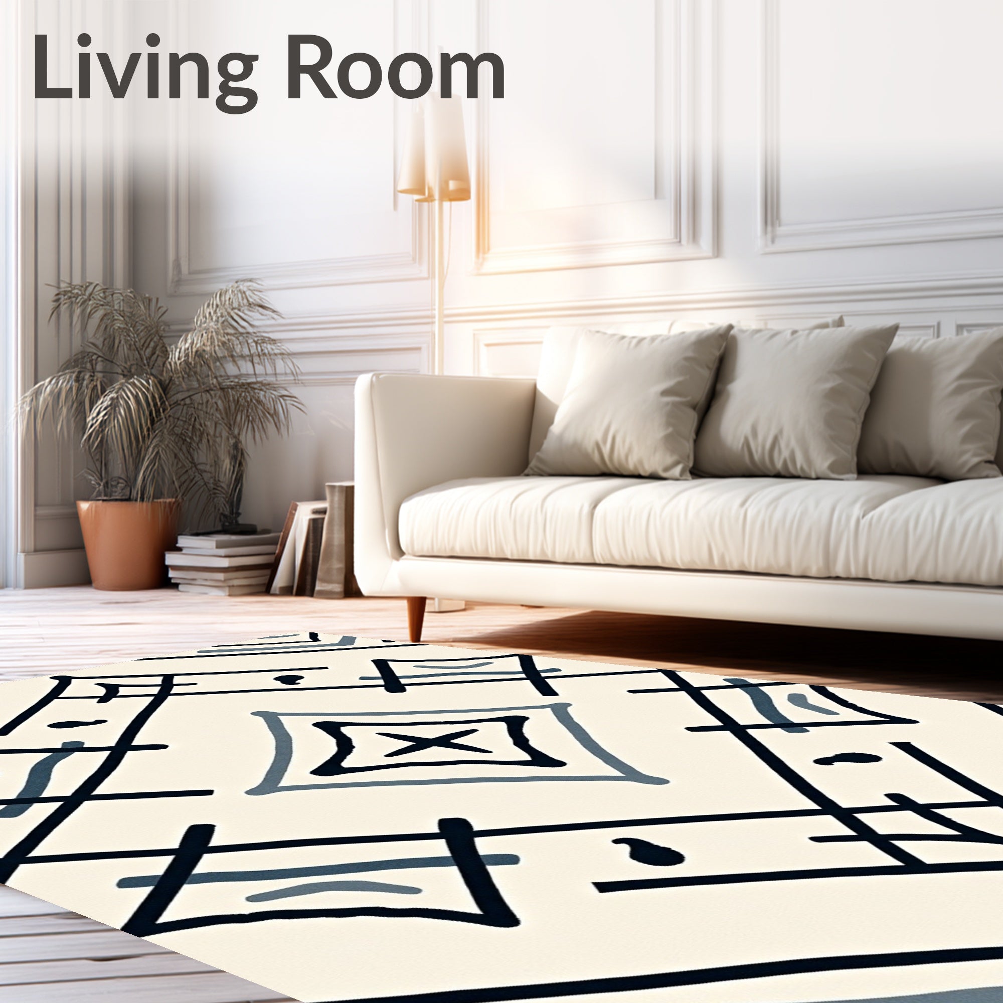 Ultra Soft Area Rug, Non Slip, Stain Resistant, Washable Area Rugs for Living Room, Bedroom, Hype Lattice Interlocking Lines Abstract(Black) Overview:
